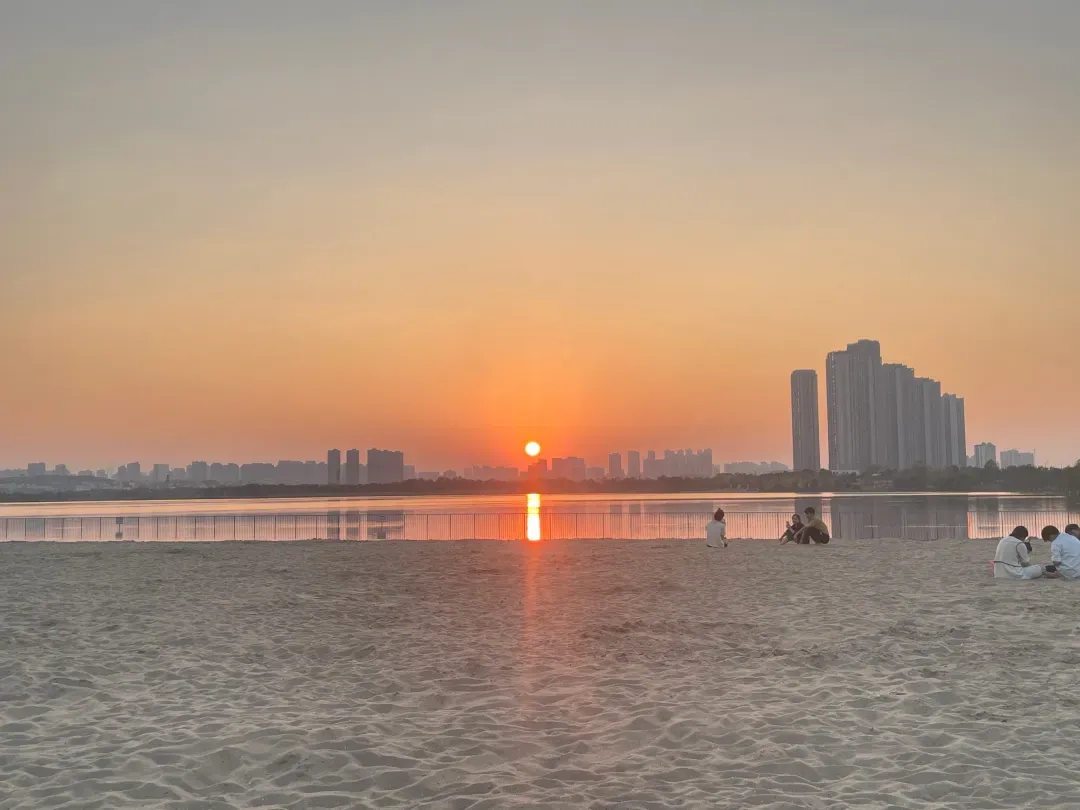 在长沙,想要感受海滨般的晚霞美景,松雅湖国家湿地公园绝对是不二之选。这里湖水清澈,视野开阔,有着细腻的沙滩和充满热带风情的棕榈树,仿佛让人置身于海边。当傍晚来临,夕阳的余晖洒在湖面上,整个湖面被染成金黄色,波光粼粼,如同一片金色的海洋。