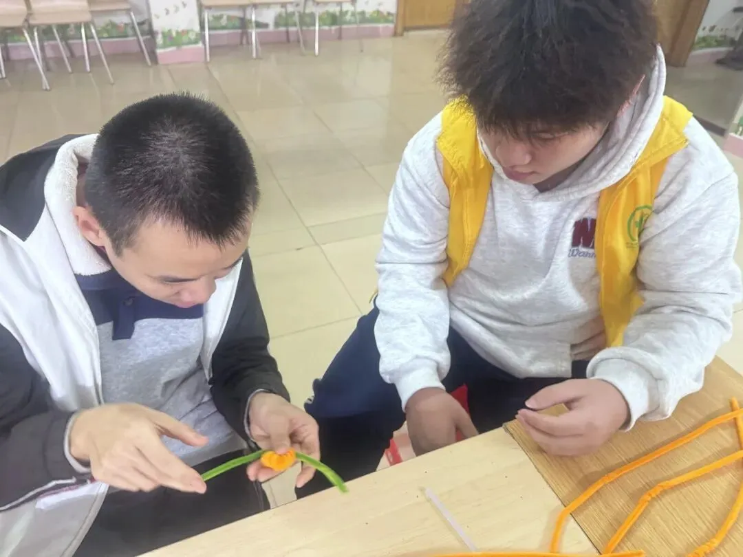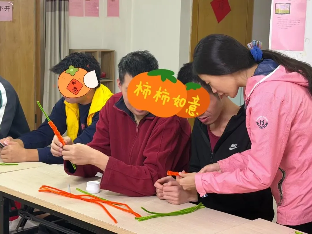 本次手工技能训练结合学员的认知水平和动手能力,采用“趣味引导+分步教学+耐心帮扶”的模式,挑选了扭扭棒小柿子小盆栽手工,兼具实用性与趣味性的手工项目,将康复训练与手工创作有机融合,让学员在轻松愉悦的氛围中提升技能、锤炼心性。