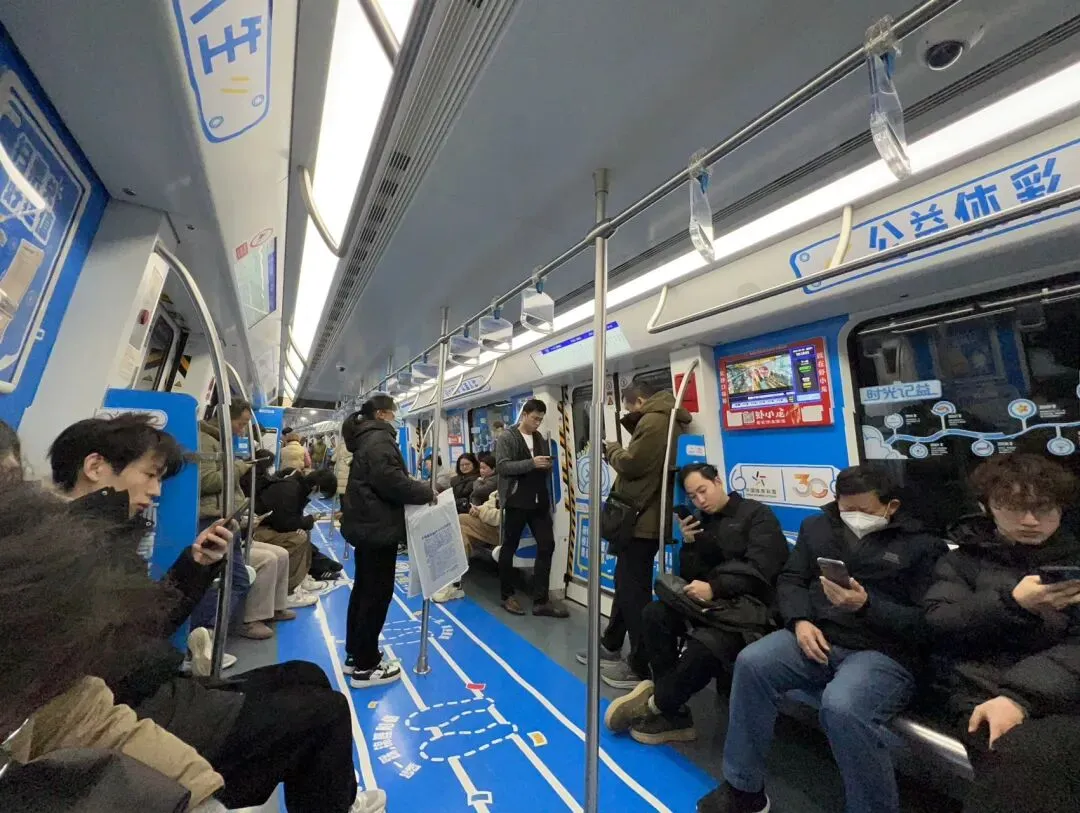 车厢外,墙壁上巨大的广告海报争奇斗艳,大柱子就更不会放过,从时尚美妆到潮流服饰,从科技新品到特色美食,应接不暇。