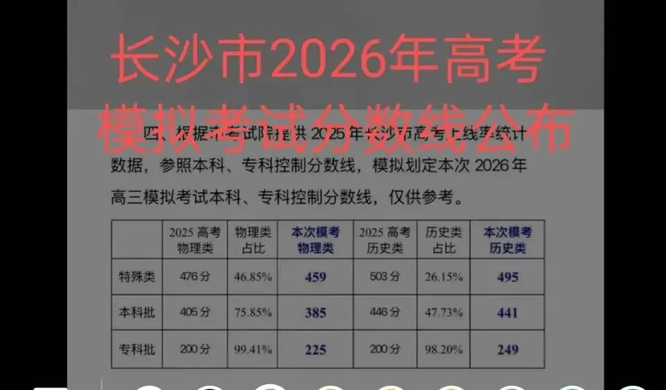 长沙市(2026年2月1-3日)高三模拟考试分数线公布