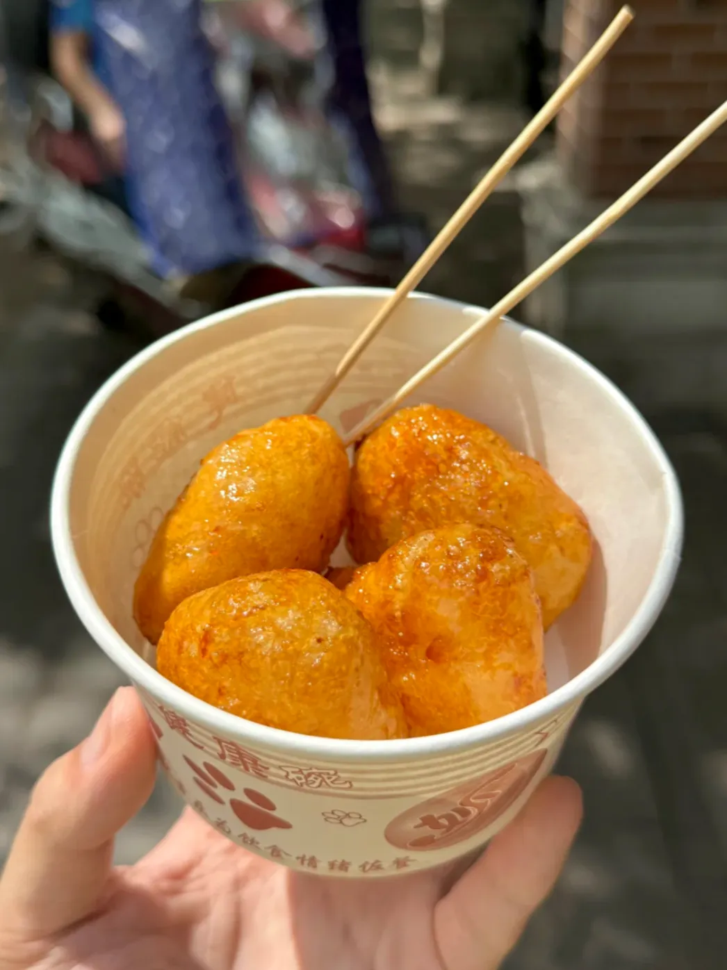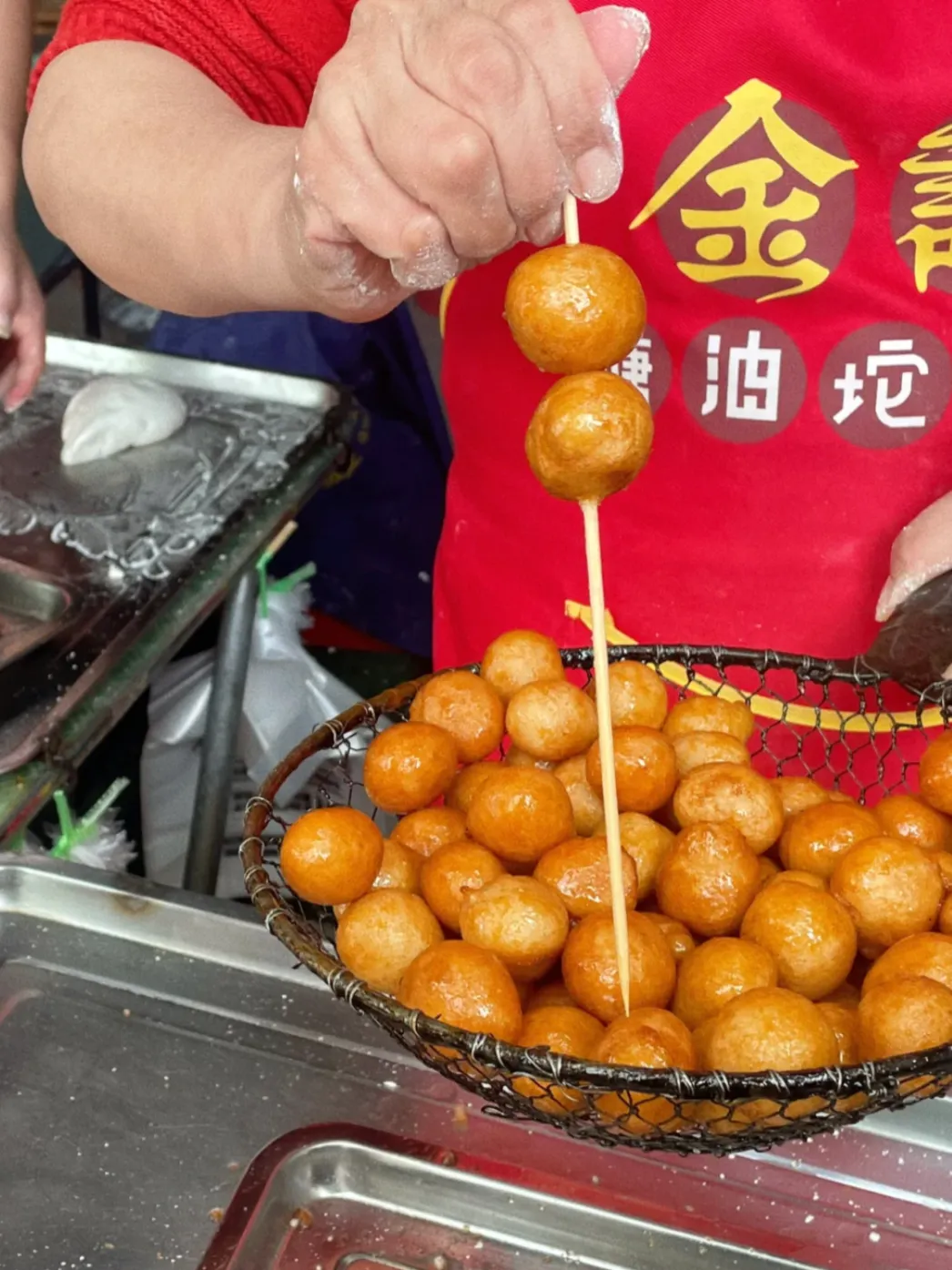 米粉糯米团在糖油里翻滚出脆壳,咬开是烫口的软糯。