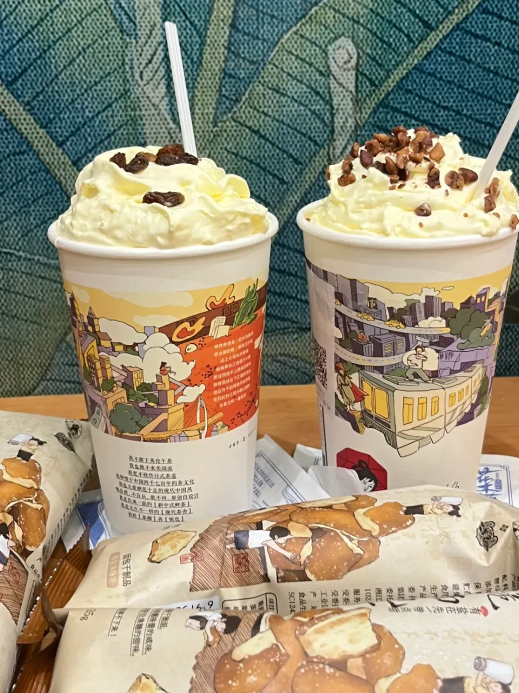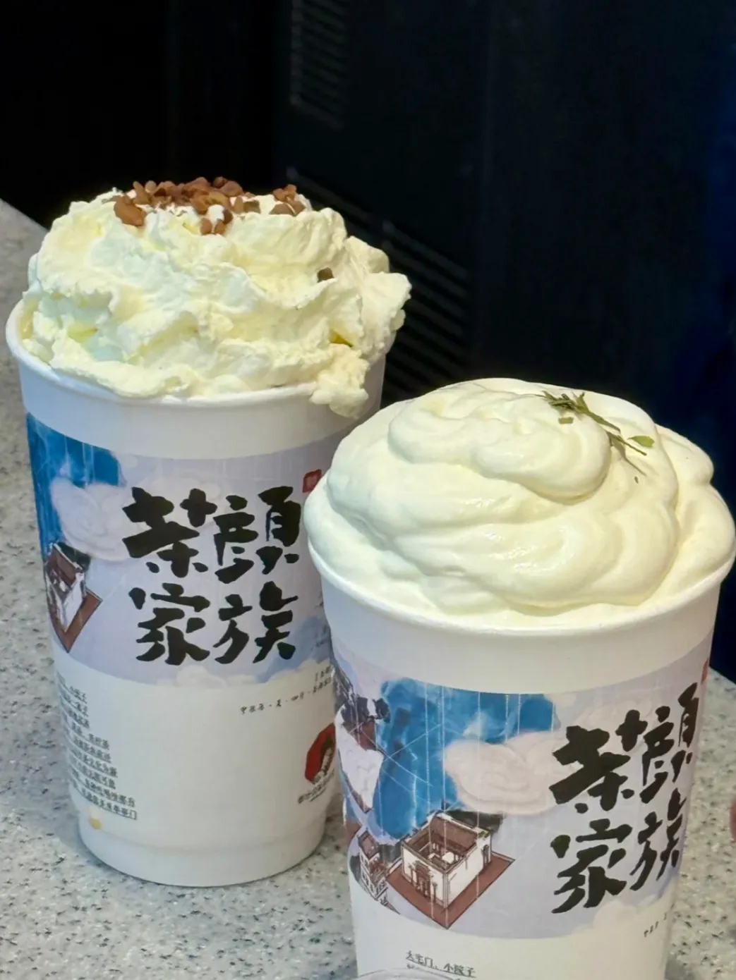 奶油顶撒着坚果碎,确实好看。茶底清爽不腻,和厚重奶茶不一样,逛得口干时来一杯挺舒服。