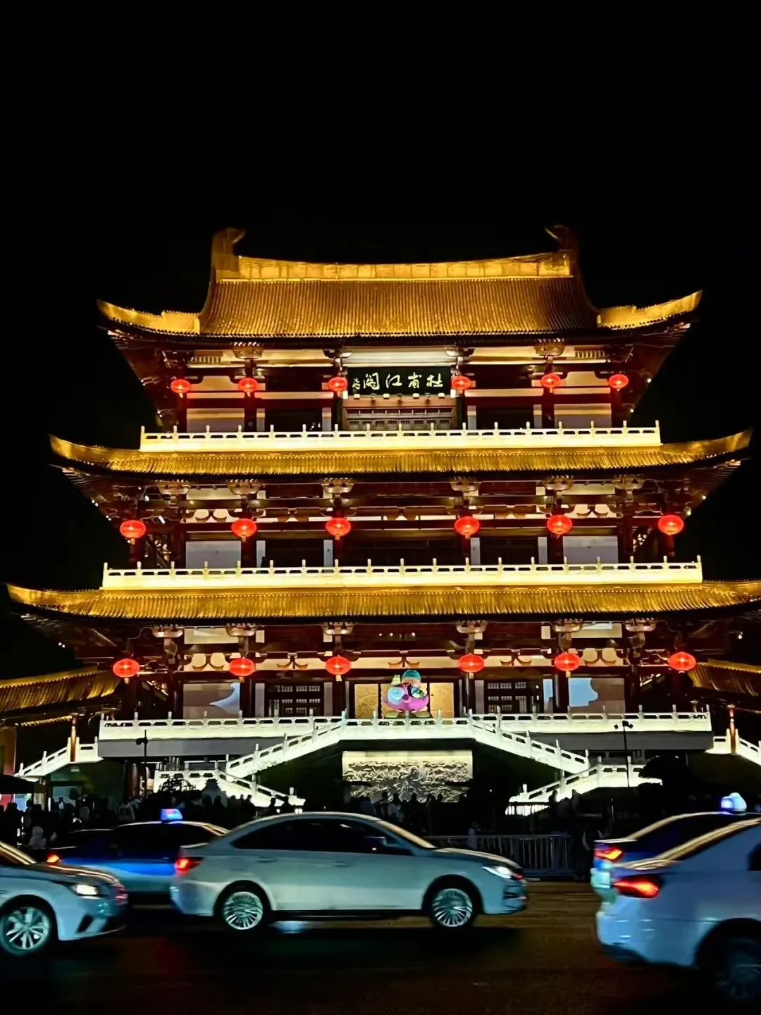 建筑主体高18米,共四层(含夹层可视作七层),采用典型的仿唐风格,朱红色柱、灰瓦飞檐、雕梁画栋,气势古朴典雅。存疑杜甫江阁不仅是长沙的文化名片,也是市民休闲和游客打卡的热门景点。2023年,杜甫江阁完成了提质改造,通过引入“喜相逢”唐风夜游等沉浸式体验活动,焕发出新的活力,成为长沙夜游经济的新亮点。