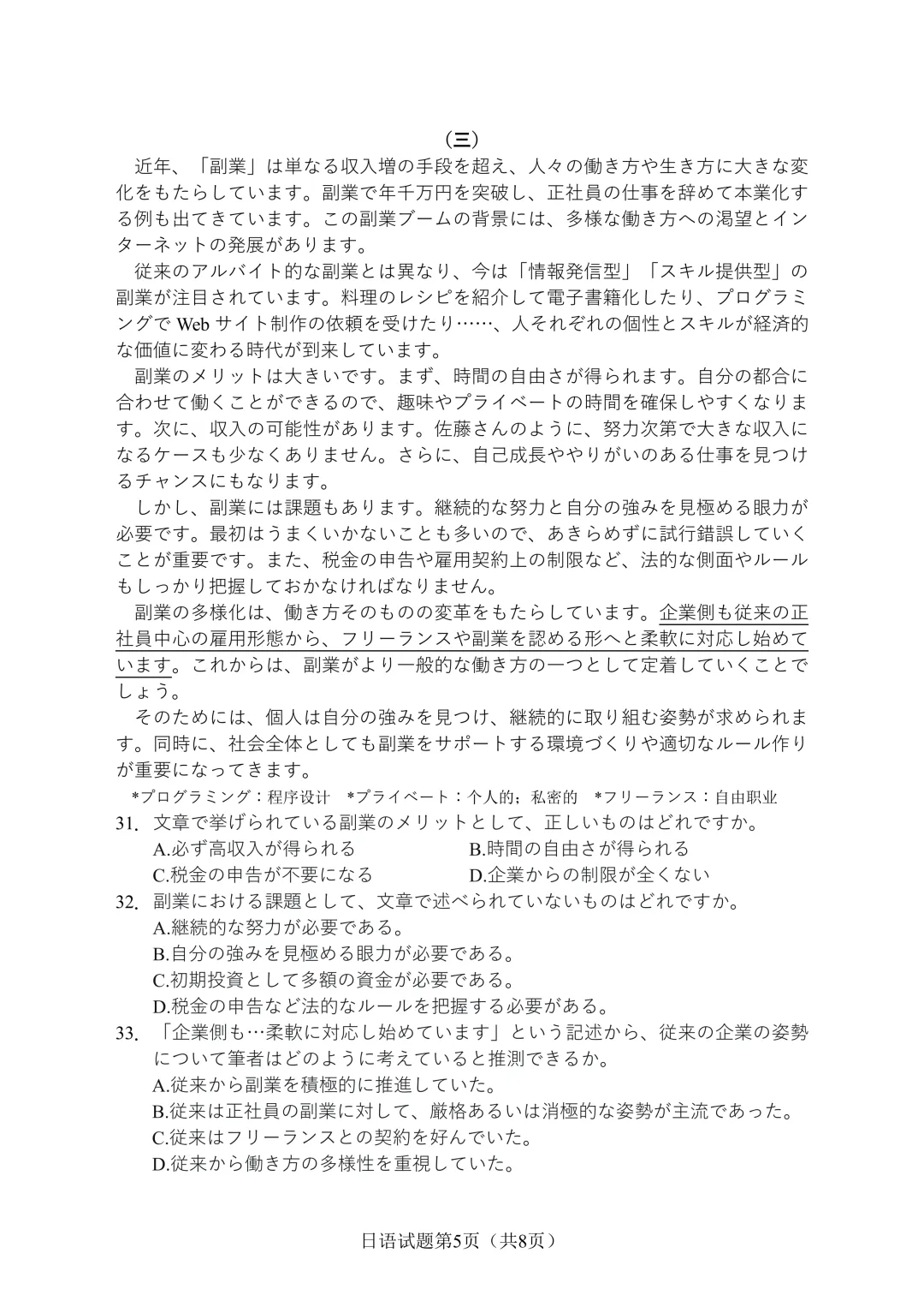 【高考日语】每日阅读-全真模拟高考阅读文章20(附翻译解析)
