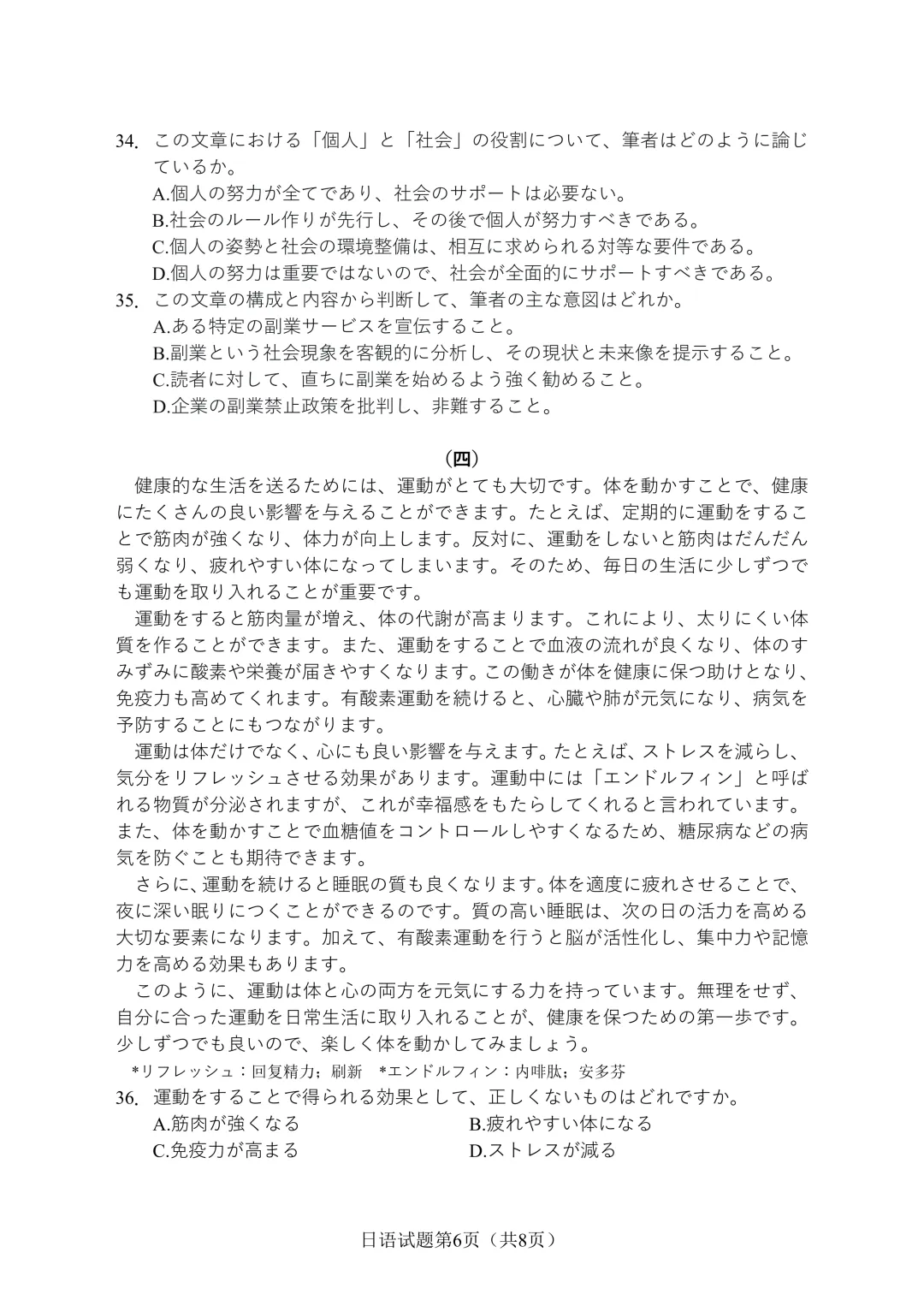 2021年1月福建省高中学业水平考试日语试卷+听力+答案(日语会考)