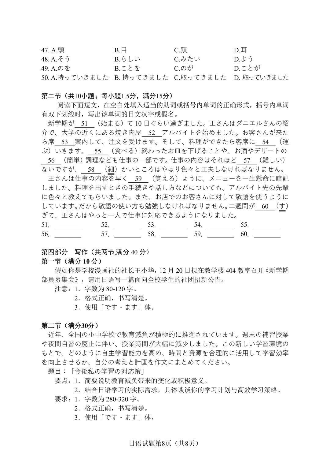 【含B站讲解视频】2023年1月福建省日语高中学业水平合格性考试真题卷福建日语会考(无音频作文:妈妈的生日)
