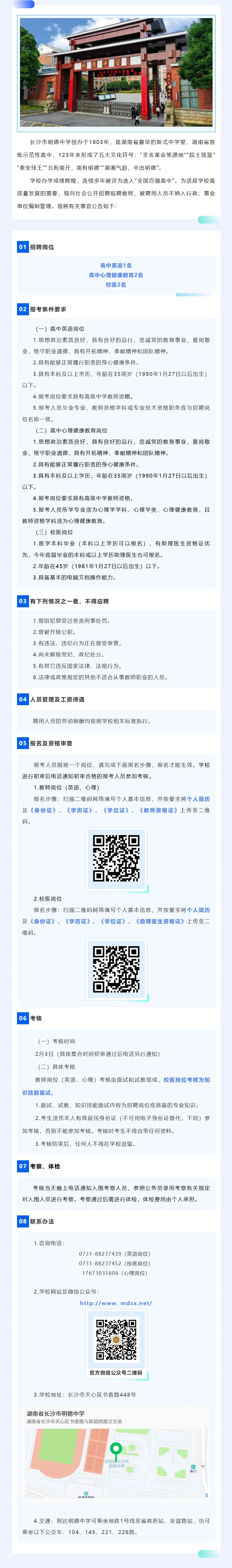2026年长沙市明德中学春季临聘教师及校医招聘公告