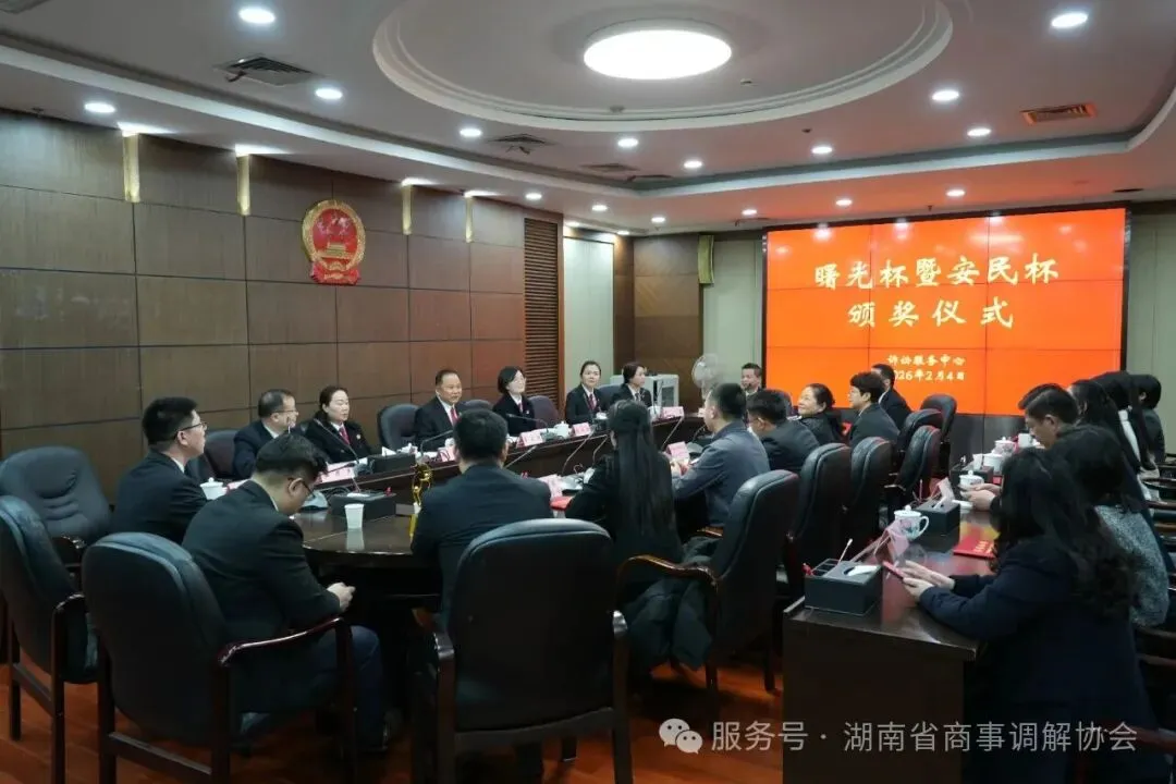 2026年2月4日上午,长沙市中级人民法院诉讼服务中心隆重举行了2025年第四季度“安民杯”调解竞赛颁奖仪式。中院党组书记、院长李立新,副院长杨华昭出席仪式并为获奖集体与个人颁奖。