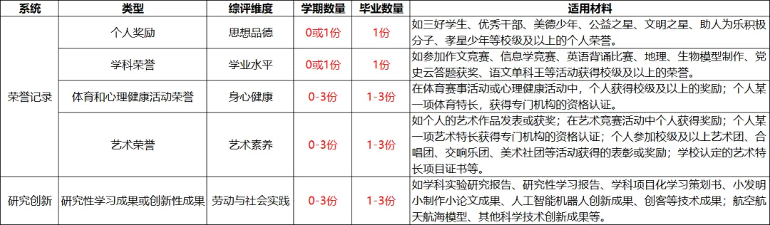 综评材料分 5 大类,每类都有明确的上传数量要求,对照下面的清单整理,不遗漏不超额!