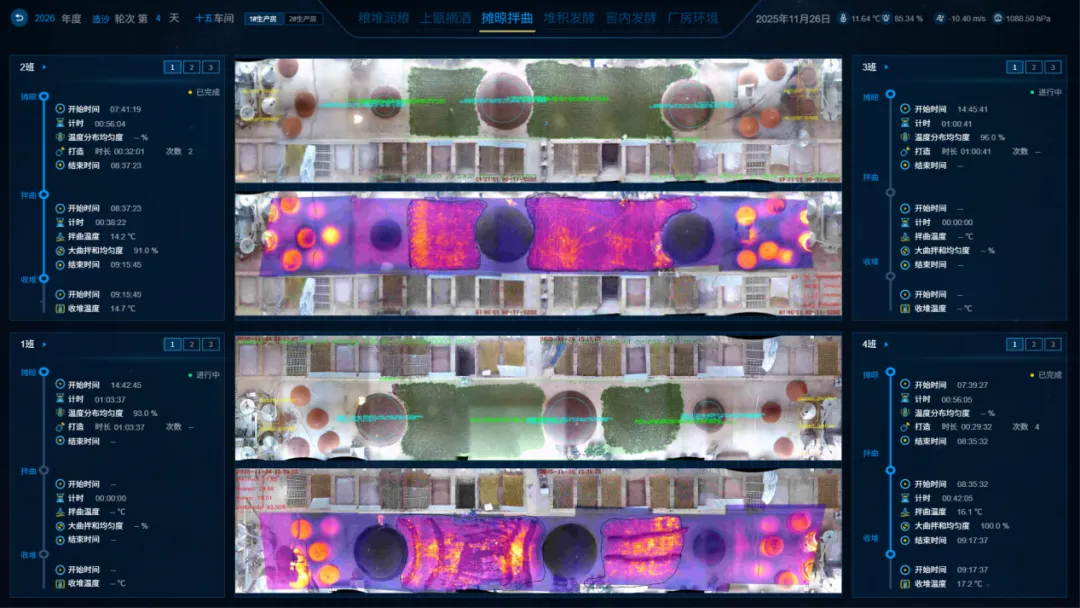 四年来的探索攻坚在2025年结出硕果:该系统让润粮、上甑到发酵等制酒酿造环节,实现数据化解析与可视化管控,生产逐步走向“透明可控”。“过去,老师傅的经验依靠‘口传心授’,许多生产环节就如同做菜时说‘放盐少许’一样,缺乏量化指标,而现在系统能反馈我们什么时候放盐、要放多少克。”项目主要参与者的生动比喻,道出了这场数智化转型的核心。