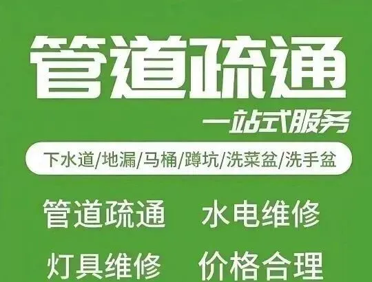 管道疏通:使用专业疏通设备,解决各类下水道、卫生间、地漏、浴缸、菜池、阴沟、马桶、蹲坑等堵塞问题。