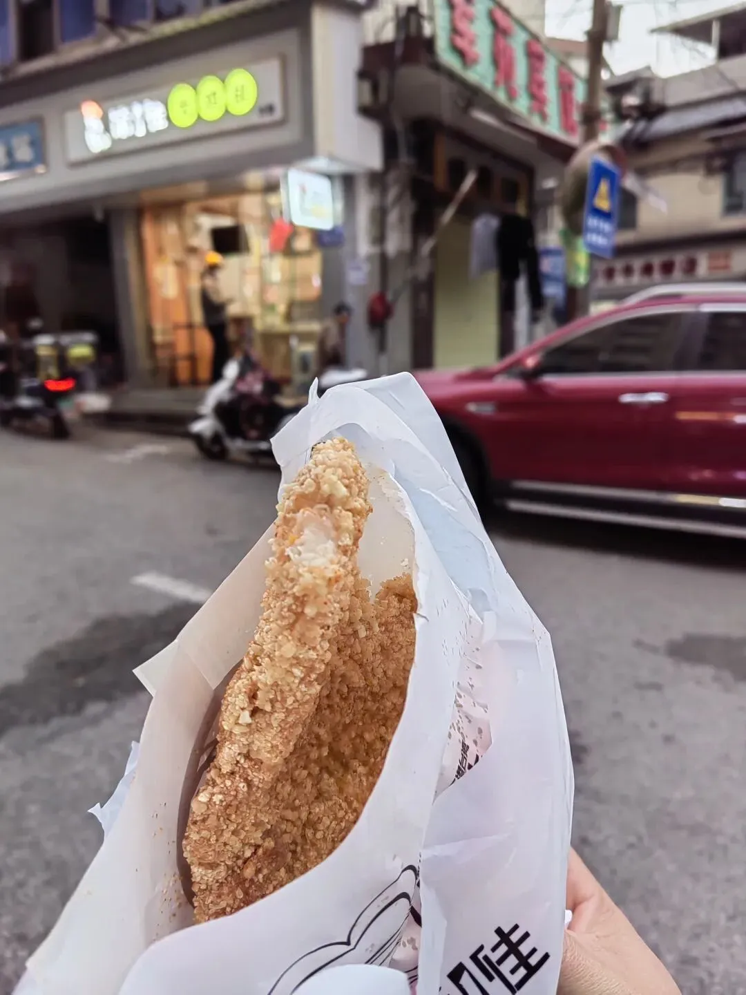 有阵子鸡排哥火的一塌糊涂,科大东街的第一佳鸡排店,就有好些人种草,去打卡了,最大的感受就是太扎实了,好大一块,价格不算便宜,作为男同胞都觉得份量大,不知道女生们感觉咋样,反正我点了这一块,感觉就吃不进别的了。个人觉得如果份量减半更好,首先价格实惠一点,其次也不影响买点其他的小吃,不至于一次就吃撑,好歹是炸货,量大了容易腻。不知老板是不是觉得边上的兵哥哥普遍食量大,或者目标客户是情侣档。