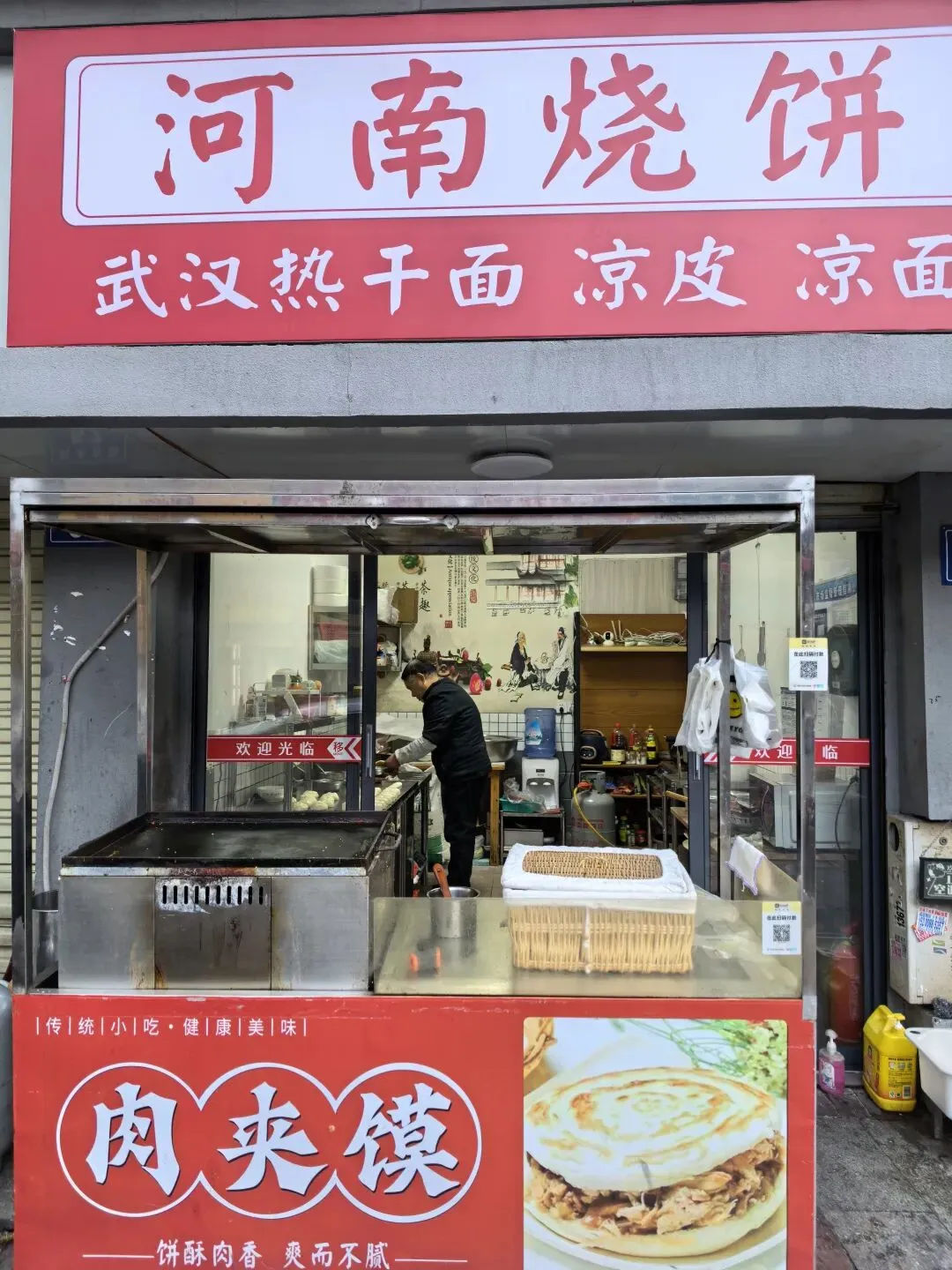 上次去了河南,吃了那边的饼子,感觉不错,在这里碰巧看到了河南肉夹馍店,一听老板口音是北方的,问了一下好像是驻马店的。我说在河南好像叫火烧,她说是的,不过大伙可能对肉夹馍更熟悉,所以用的肉夹馍。肉夹馍里面的配料用的很足,不过饼子没那么热乎,口感欠缺点。
