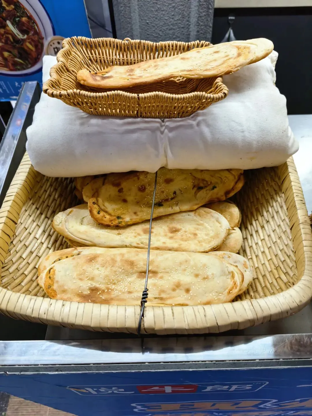 他家的饼子有点特色,烤的略焦,很有嚼劲,牙口不好的,可能会觉得咬不太动,可能北方习惯像羊肉泡馍那样,是把饼子掰碎泡汤里吃吧。个人还是觉得饼子直接吃更好。饼子还买5送1。