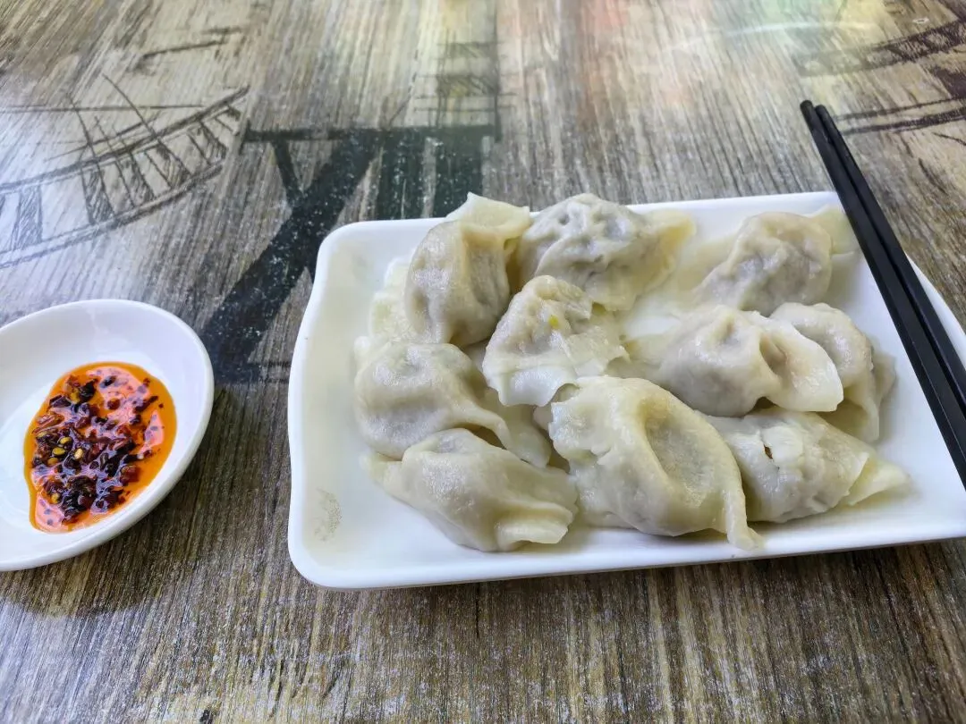 在科大东门路口这边,相隔不远就有两家东北饺子馆,有一家门脸装饰得颇有东北气息,大花棉袄画风,可能是开的更晚,不过好玩的是,我去吃饺子那回,好几波人都选了另一家装修普通的。店里品种挺多的,和之前去的洪西东北餐厅一样,墙上也是密密麻麻的菜单,特意问了一下,这家也有蜂蛹,不过当天没吃。