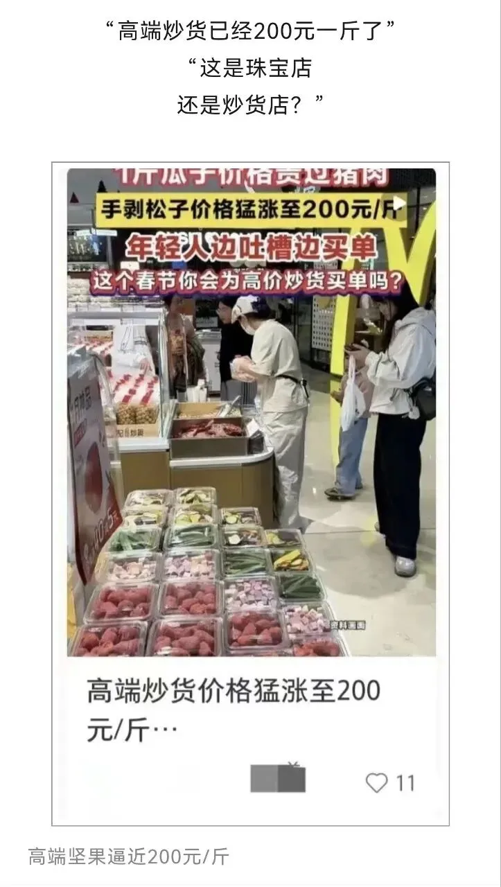 在物资不那么丰富的年代,瓜子花生这类炒货就是逢年过节必不可少的好物,除夕春节一家人围着火炉,磕着瓜子花生扯谈守岁,其乐融融。如今,小朋友们似乎不怎么喜欢瓜子花生这类玩意了。嗑瓜子看戏成了梗。茶话会瓜子花生是配角,水果糖果更有档次。
