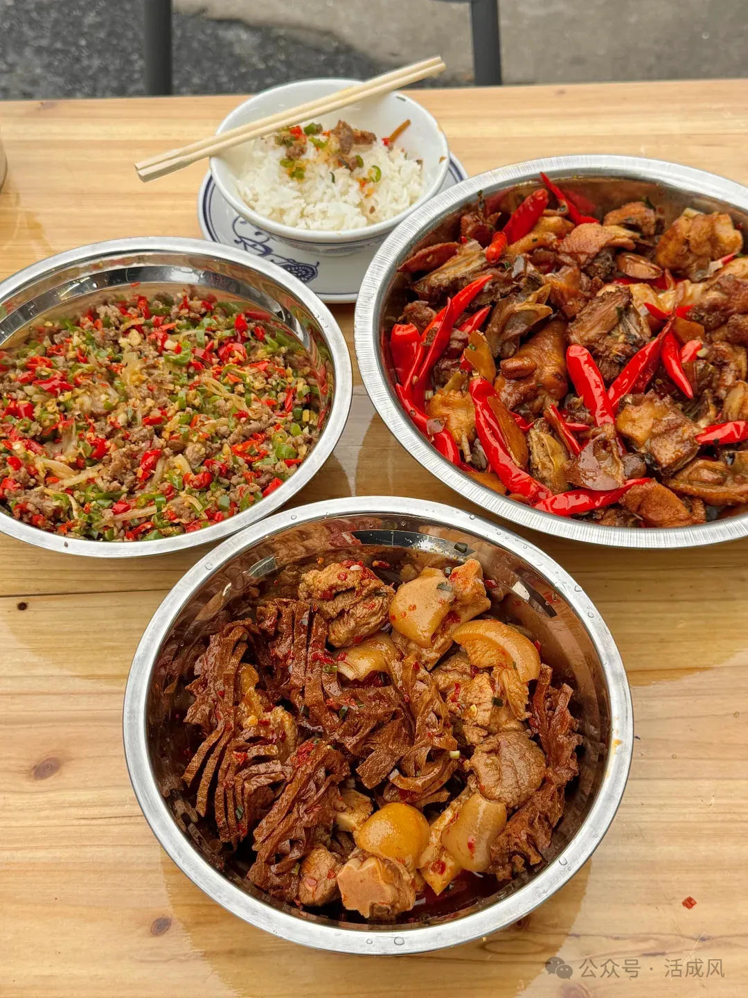 这地方的早晨,是豆浆、糍粑、粉蒸肉的香气。摊主动作麻利,嘴里还挂着笑。粉蒸肉的米粉糊在肉上,入口一软,肉香就全开了。中午,推荐一份“湄江鱼头”。河水养出的鱼肉紧致,炖时放辣椒和豆豉,锅盖一揭,鲜气和辣气混成一团,扑面而来。晚餐得去老街深处的馆子,点碗腊肉炒笋干。锅气浓,咸香里透着山野气。还有涟源当地的一道小吃——“油炸团子”。做法简单:用糯米粉包豆沙,捏成球,入锅炸至金黄。出锅时外皮“咔哒”一响,咬开是糯与甜的混合,刚好不腻。吃到这,会觉得——夜风一吹,油气也成了人间的温柔。