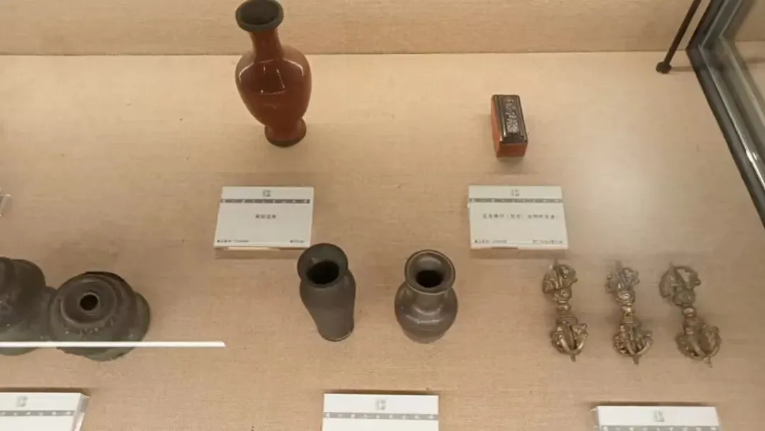 陈列馆的核心位置,静静安放着一方清同治年间的疑似御赐石印,露面极为罕见。石印正面刻着“潭州紫微山开福寺敕赐圣寿季禅”的字样,背面的纪年款清晰可辨,作为皇权与佛教寺院交融的直接物证,它虽没有华丽的材质,却承载着开福寺千年的地位与荣光,静静诉说着昔日的盛景。