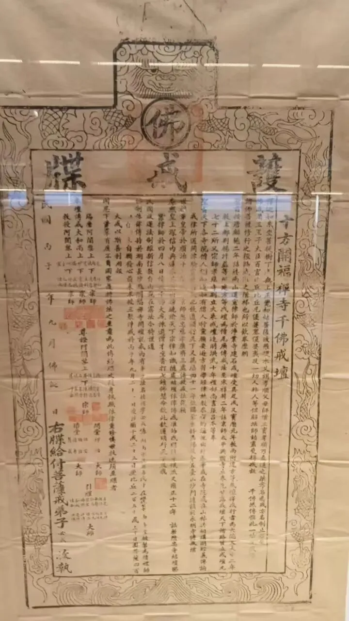 刚入山门,四柱三门的花岗石牌坊上的寺名,瞬间将人拉回千年时光里。沿着青石板路前行,飞檐斗拱的明清式殿宇错落有致,弥勒殿、大雄宝殿、毗卢殿依次排布,香火袅袅中,梵音轻绕,肃穆又静谧。原本只想循着禅意漫步,却在西侧偏殿的历史陈列馆里,邂逅了这座古刹最珍贵的秘密。