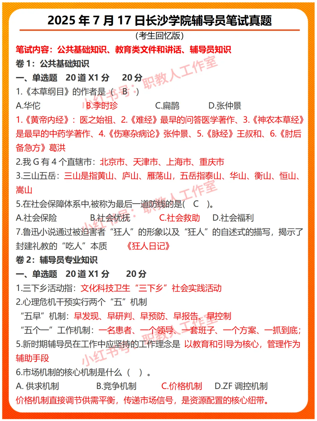 >2025年7月17日长沙学院辅导员招聘笔试真题