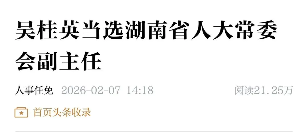 就在前1天,“长沙发布”报道,2月6日,全市组织部长会议召开,总结2025年组织工作,部署2026年任务。省委常委、市委书记吴桂英作出批示。