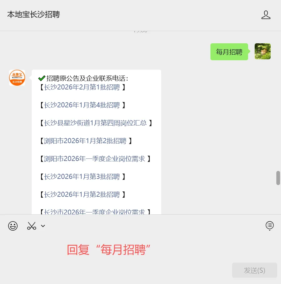 关注【本地宝长沙招聘】,在聊天框