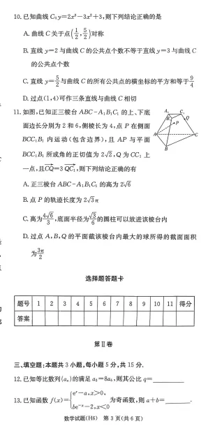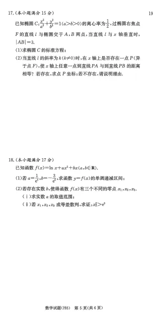 湖南长沙市雅礼中学2026届上学期高三数学第6次月考试卷及详细答案