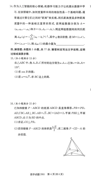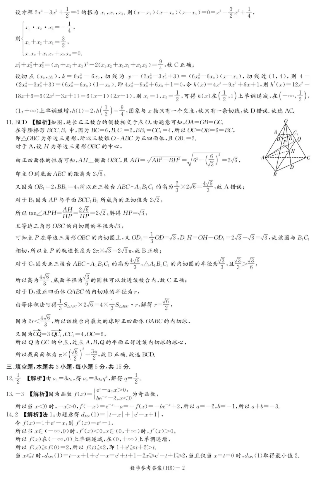 >湖南长沙市雅礼中学2026届上学期高三数学第6次月考试卷及详细答案