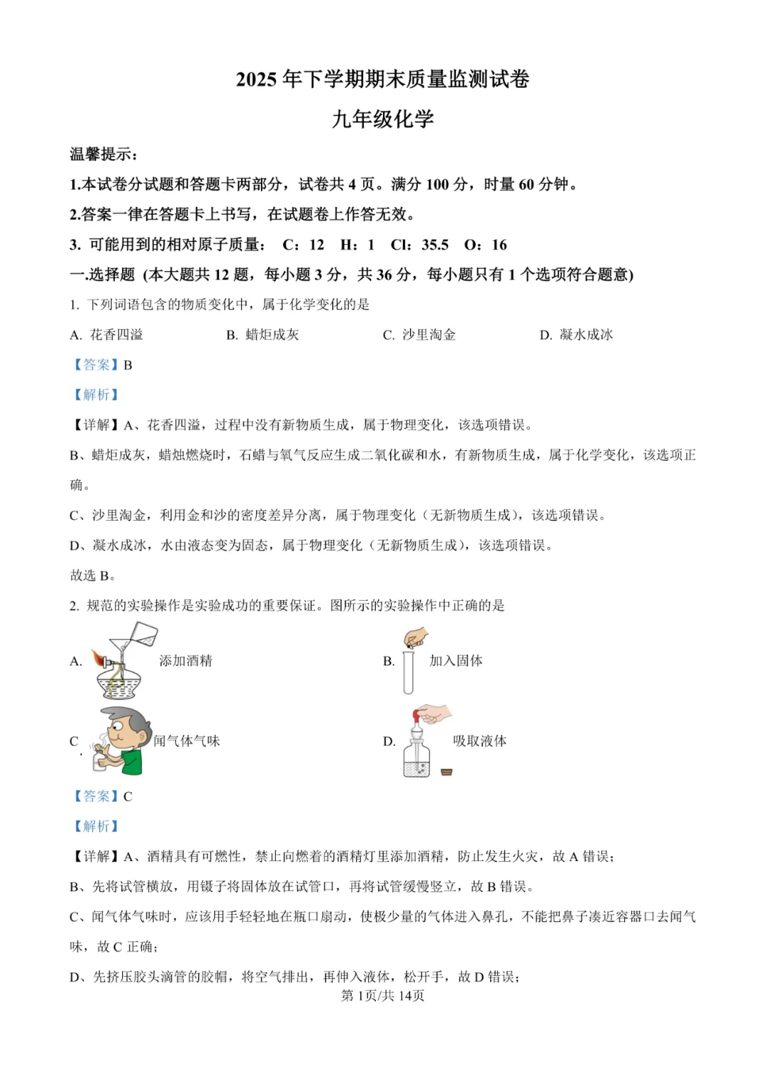 本卷全面覆盖物质变化、分子原子、化学方程式等核心概念,蒸汽眼罩探究题体现跨学科整合能力。得分点在于基础题选项明确、方程式书写规范,难点在于多因素控制实验的数据分析及工艺流程推理,需学生具备较强的信息提取与逻辑推理能力。