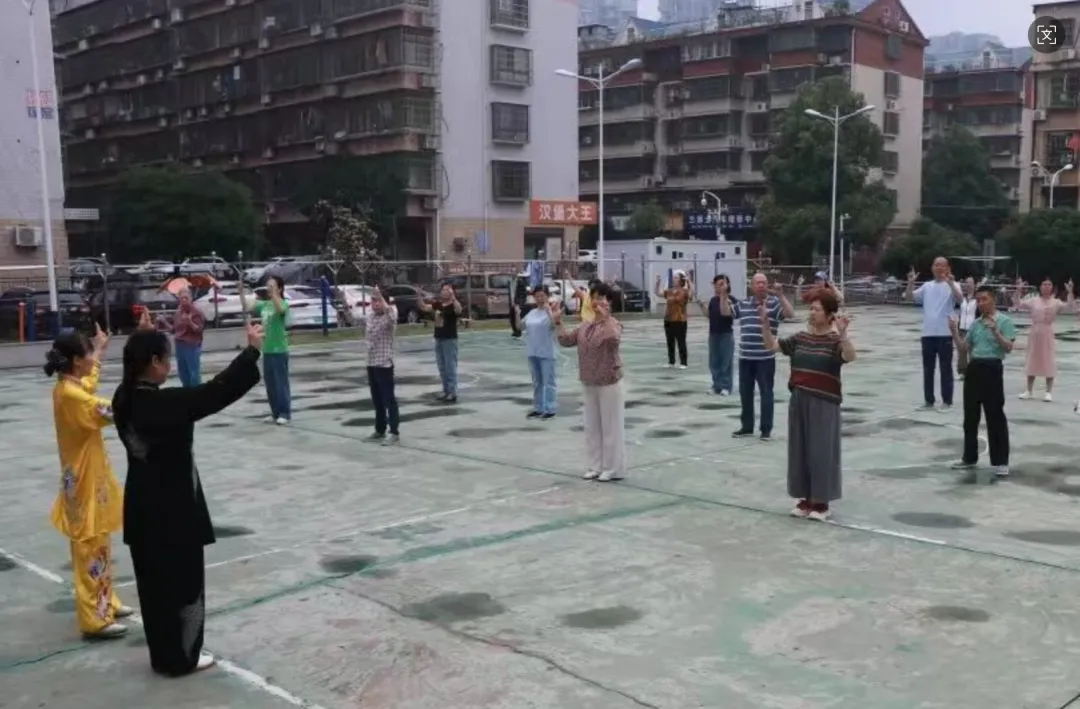 学校在福城社区新晋文化地标 “福家欢” 大舞台打造八段锦公益课堂,成为老年大学进社区的课程品牌。篮球场化作露天学堂,居民们在老师的指导下舒展筋骨,在一招一式间体悟传统养生文化的精髓。每周四上午9点,银发志愿者们准时赴约,将课堂所学转化为服务邻里的本领,带领居民练习。学员们纷纷表示:“这样的公益课,既能强身健体,又能增进邻里感情,我们太喜欢了!”
