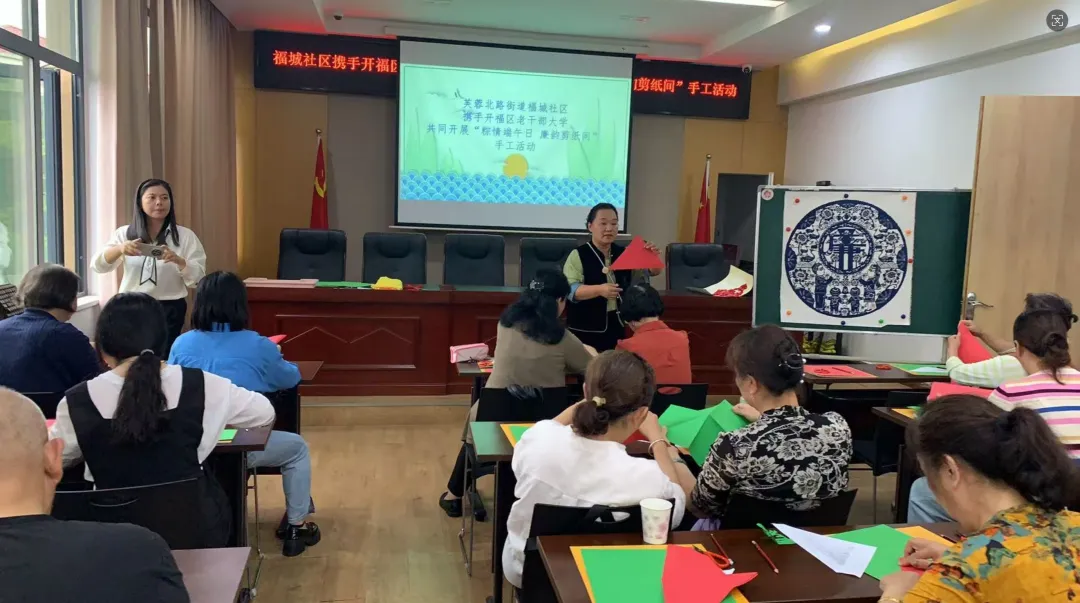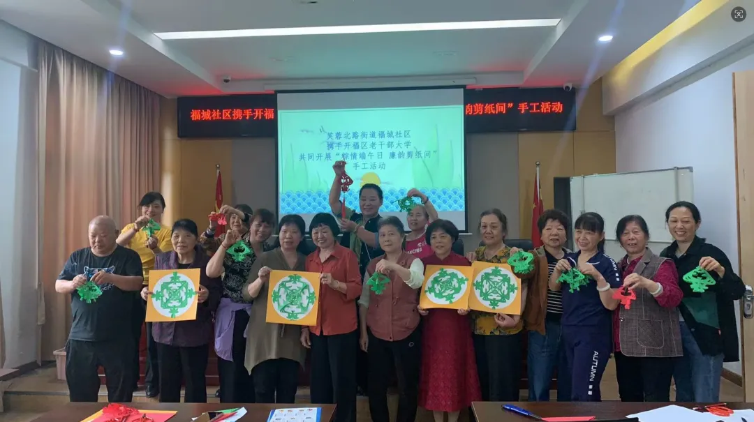 传统佳节来临之际,剪纸主题活动热闹开场。剪纸班师生将非遗技艺与社区服务深度融合。数十件精美的剪纸作品完美呈现,向居民传递节日祝福和社区关怀,让他们在沉浸式体验中感受传统文化的魅力。