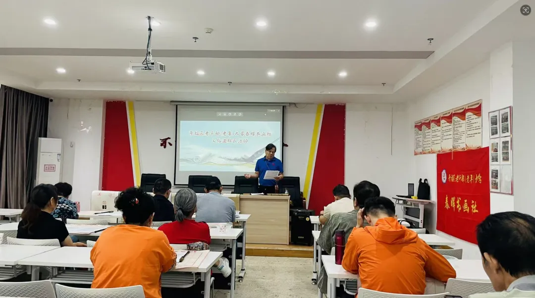 在芙蓉北路街道试点成功的基础上,开福区老干部(老年)大学乘势而上,推动 “银龄行动” 拓面升级、提质增效。2025 年,学校专门深入周边三个街道七个社区开展“点单式”问卷调查,细致梳理居民在特色课程、送课频次、学习时间、主题活动等方面的需求与期盼,形成精准化服务清单,并将任务细化到各科室。教务处、学员处与艺术团各司其职,按照清单调配志愿服务队力量,确保每个社区的文化需求都能落地见效。学校“春晖书画社”社长彭爱民还带领 8 名骨干成员,自带笔墨纸砚赴四方坪街道胜利社区,开展“书画文化进社区”活动。社团成员轮流主讲、分工协助,生动的教学吸引了 30 余名社区书画爱好者的积极参与。“学习书画既能修身养性,还能强身健脑,让我们退休生活更有滋味!” 学员们的心声,道出了文化养老的幸福真谛。