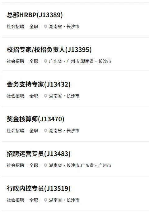 一、总部职能 / 技术岗(长沙,本科为主)