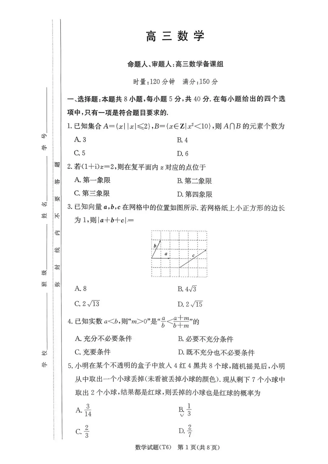 湖南长沙市湖南师范大学附属中学2025-2026学年高三上学期月考(六)