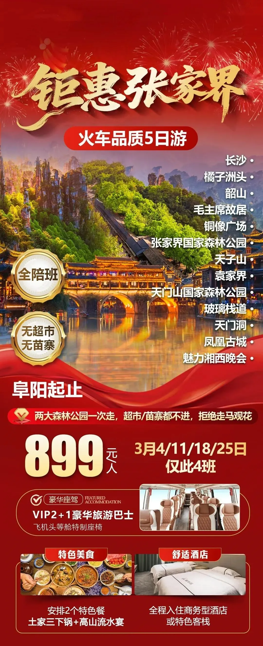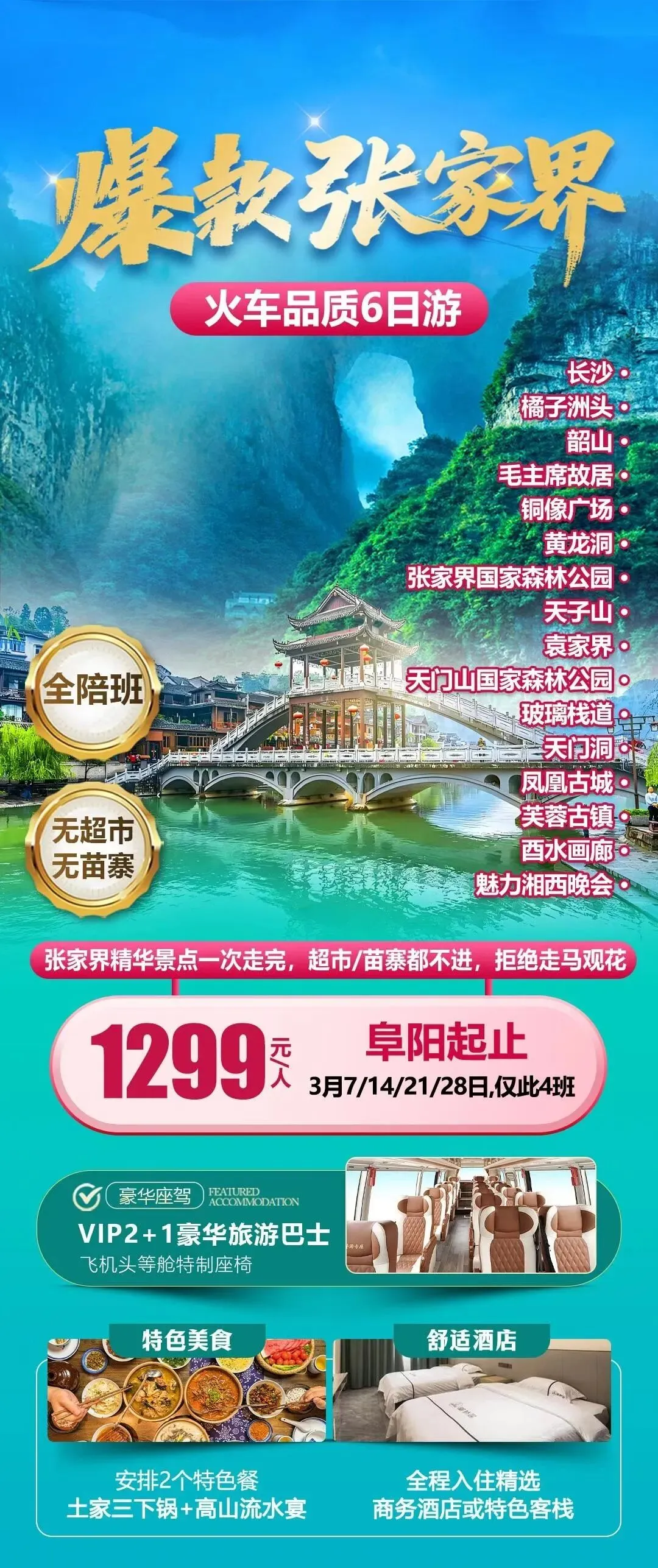 3月阜阳出发湖南长沙韶山张家界880元起,约吗?