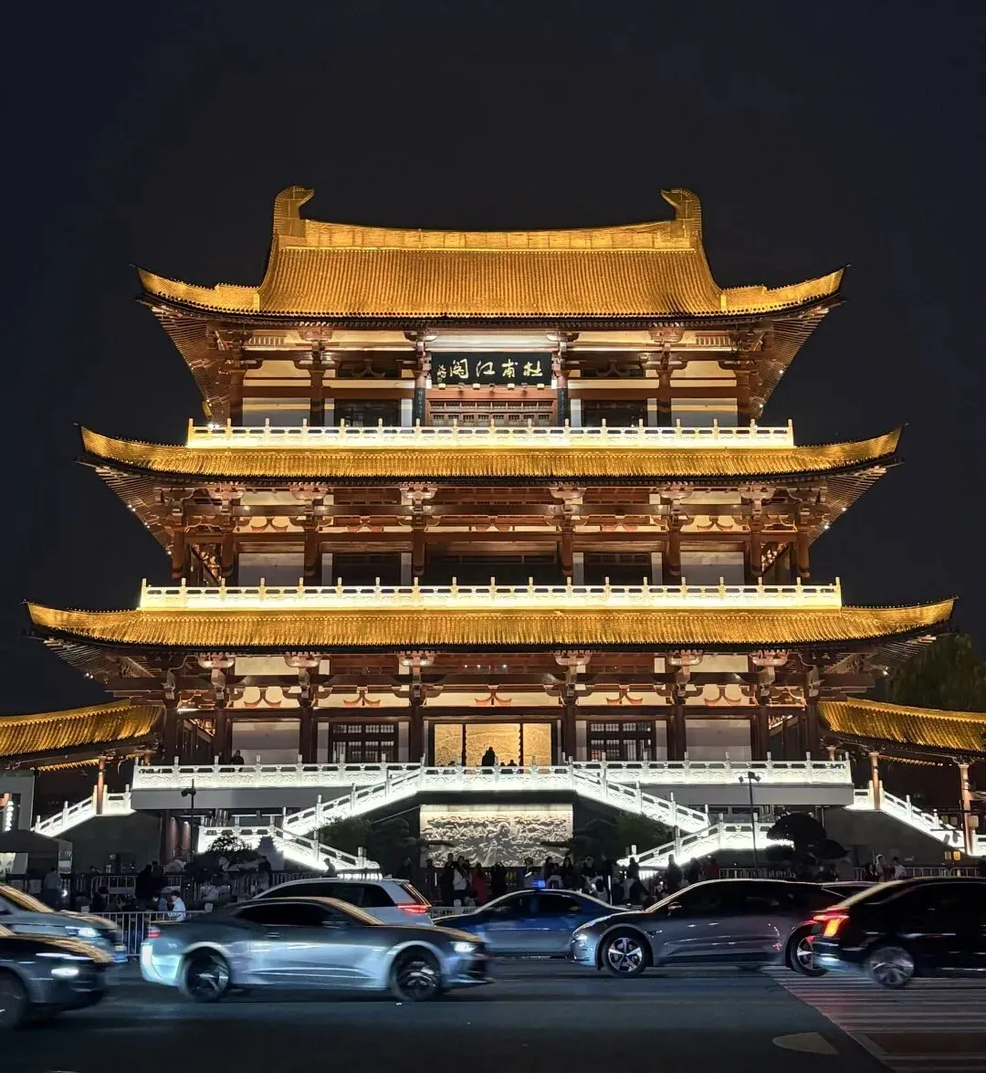湘江边一座专门纪念杜甫的仿唐建筑,杜甫晚年漂泊至长沙,在此写下《江南逢李龟年》。