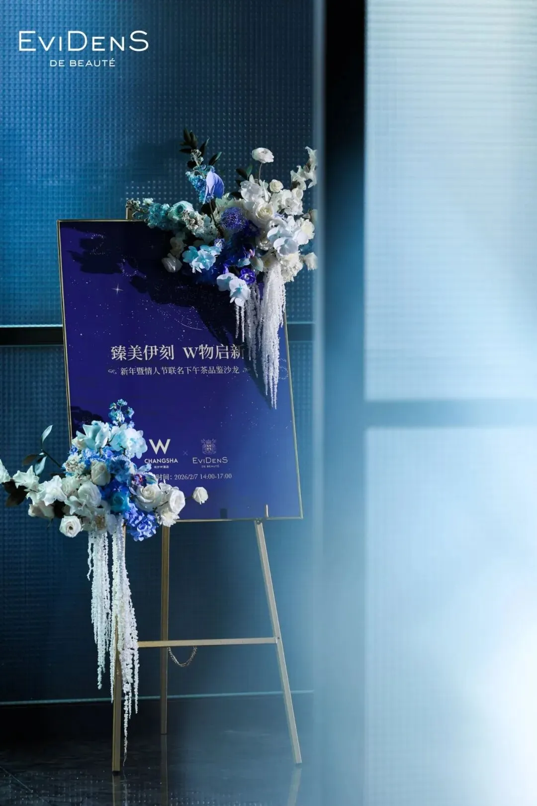 2026年2月1日,长沙 W 酒店联合法国奢护品牌EviDens de Beauté伊菲丹,以臻美「伊」刻为名,打造主题联名下午茶和联名定制套房,让社交达人们于此焕活身心,充沛活力。当南法护肤美学邂逅星城潮流地标,在新年伊始,长沙W酒店以伊菲丹经典天鹅绒蓝色、纯白色和鎏金色为主色调,设计了联名下午茶。甜品以奢华质感的礼盒呈现,如珍贵瑰宝,既体现了W的创意,又将伊菲丹的肌肤哲学通过咸甜交织的味蕾体验传递。