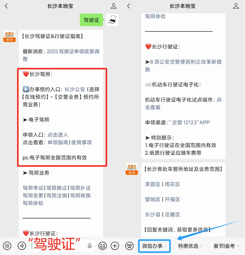 友友们可以长按下方二维码,关注并进入【长沙本地宝】,在后台聊天框回复【驾驶证】,即可直接获得办理入口啦!