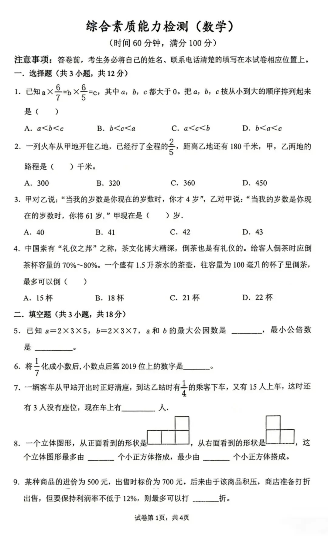 试题涵盖代数、几何、组合数学等模块,难度较高,包含填空题、计算题和解答题,如2025年长郡丘班试题涉及比例计算、几何面积、行程问题等题型。