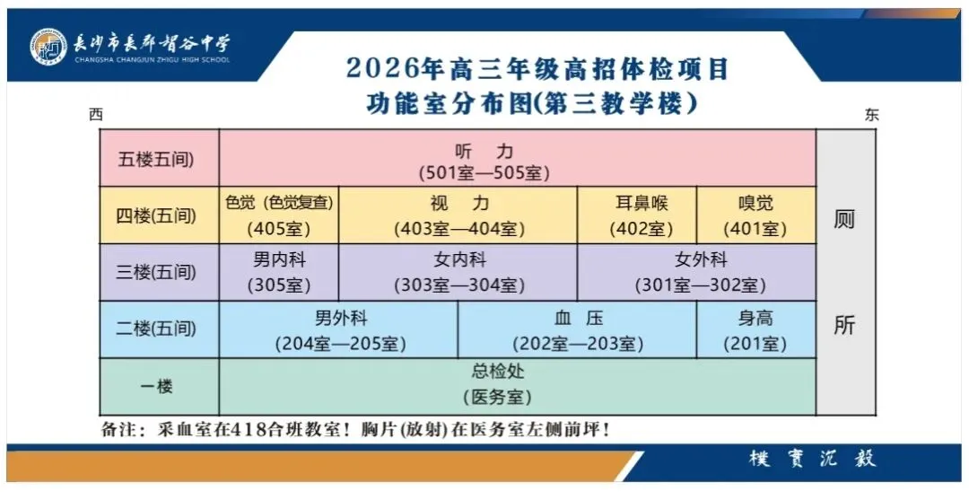 6. 体检结果不会另外对家长公布,体检结果待医院确认后可通过潇湘高考APP查看相关结果,体检结果以学校下发纸质稿,学生核对签字为准。体检项目包括胸透、眼科、内科、外科、耳鼻喉科、口腔科、肝功能常规检查等,所有项目检查结束后每个考生必须到主检处(三教一楼医务室)检查自己的数据是否完全。