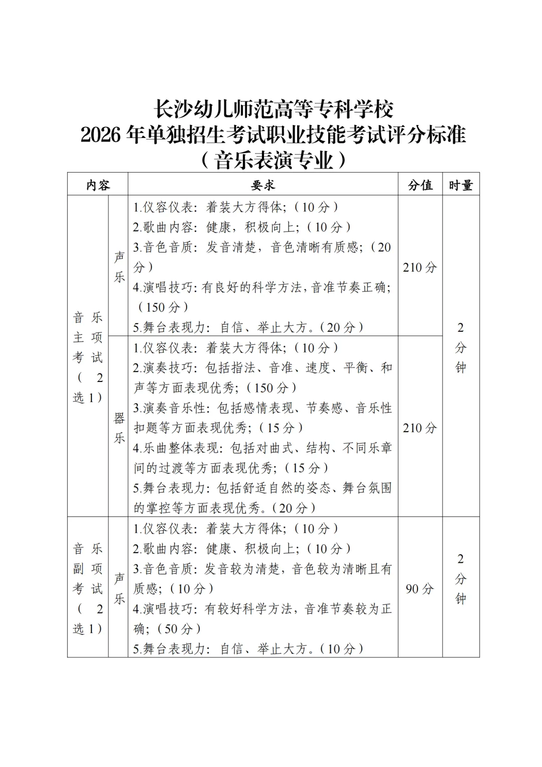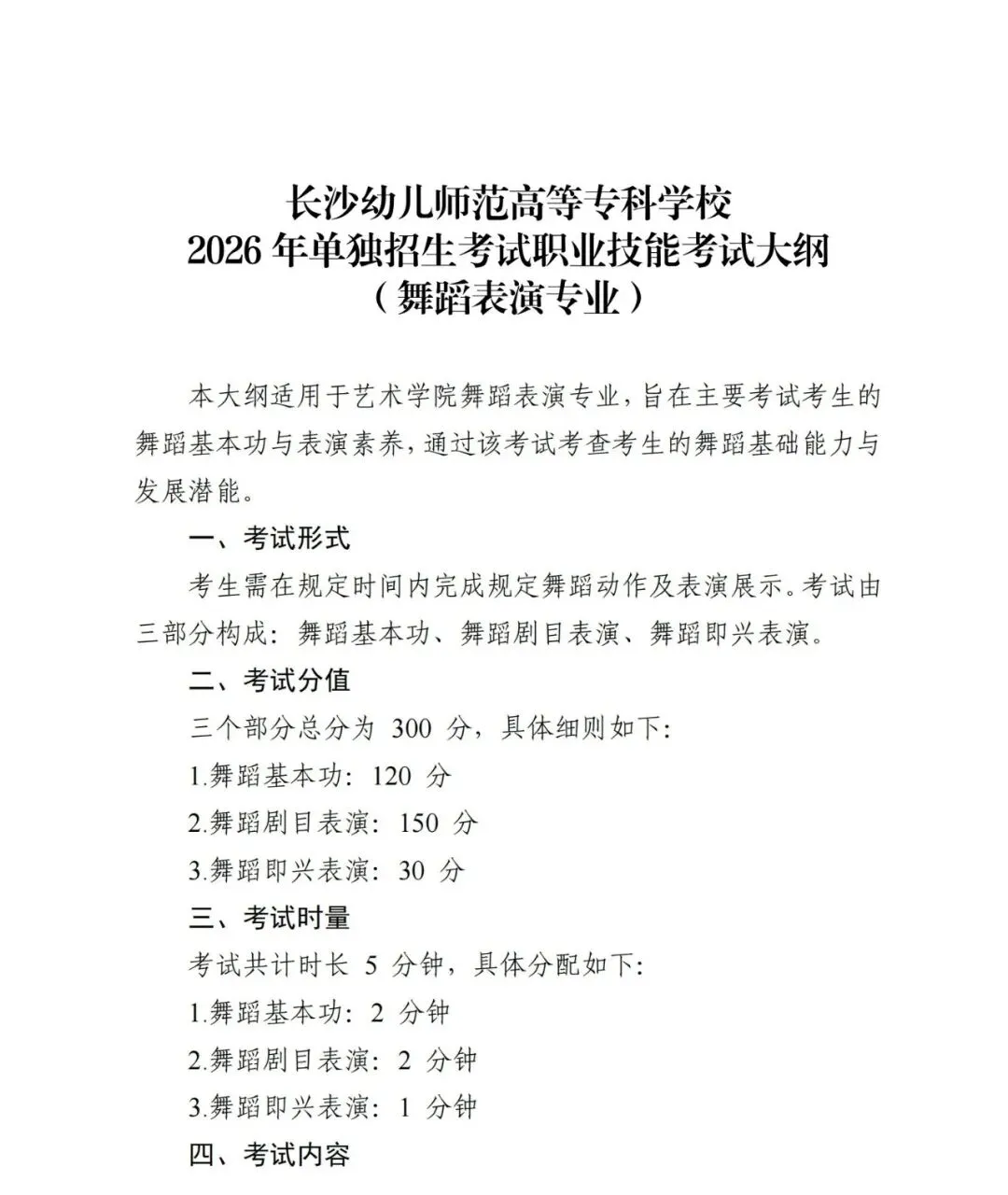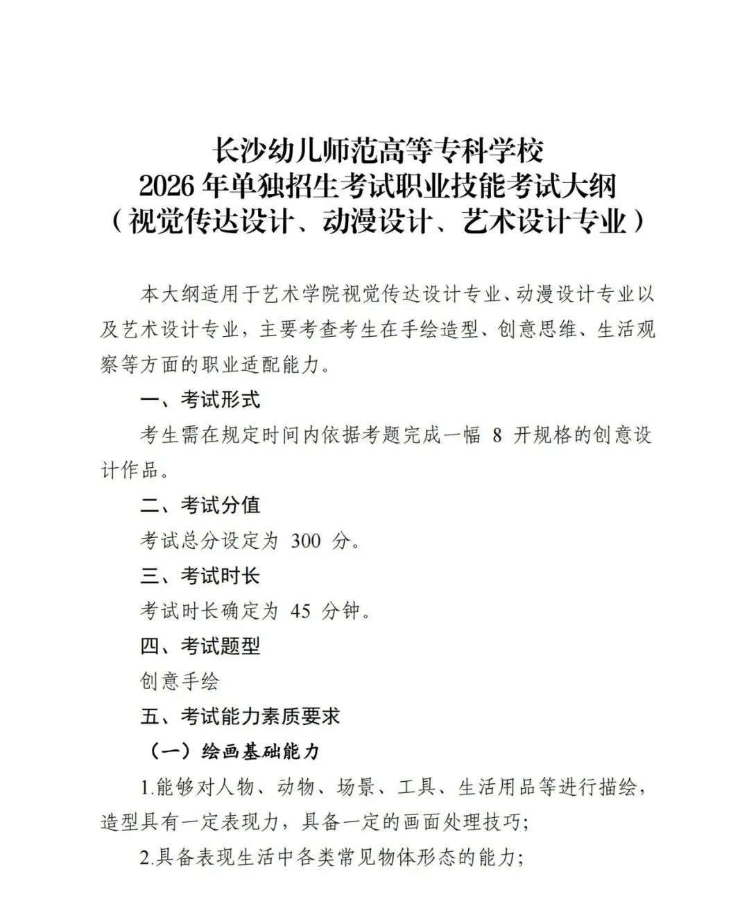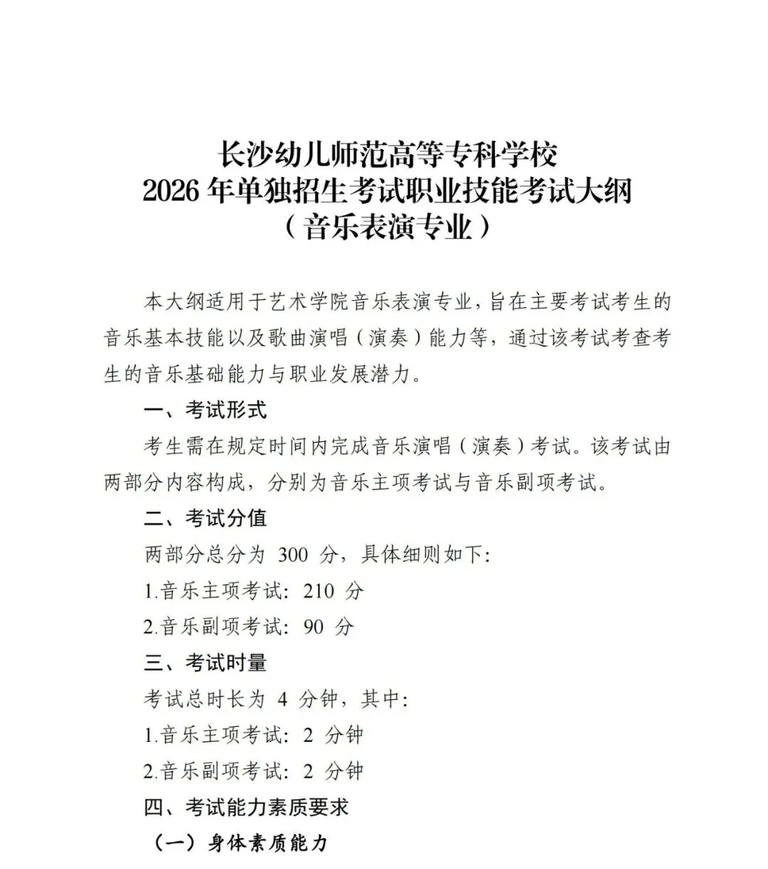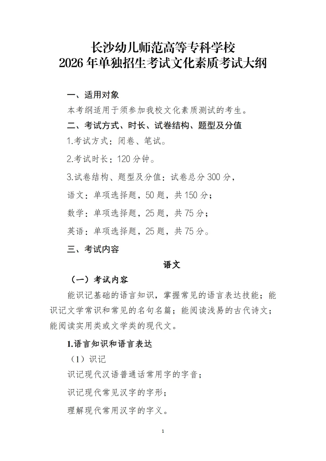 >长沙幼儿师范高等专科学校2026单招考试大纲