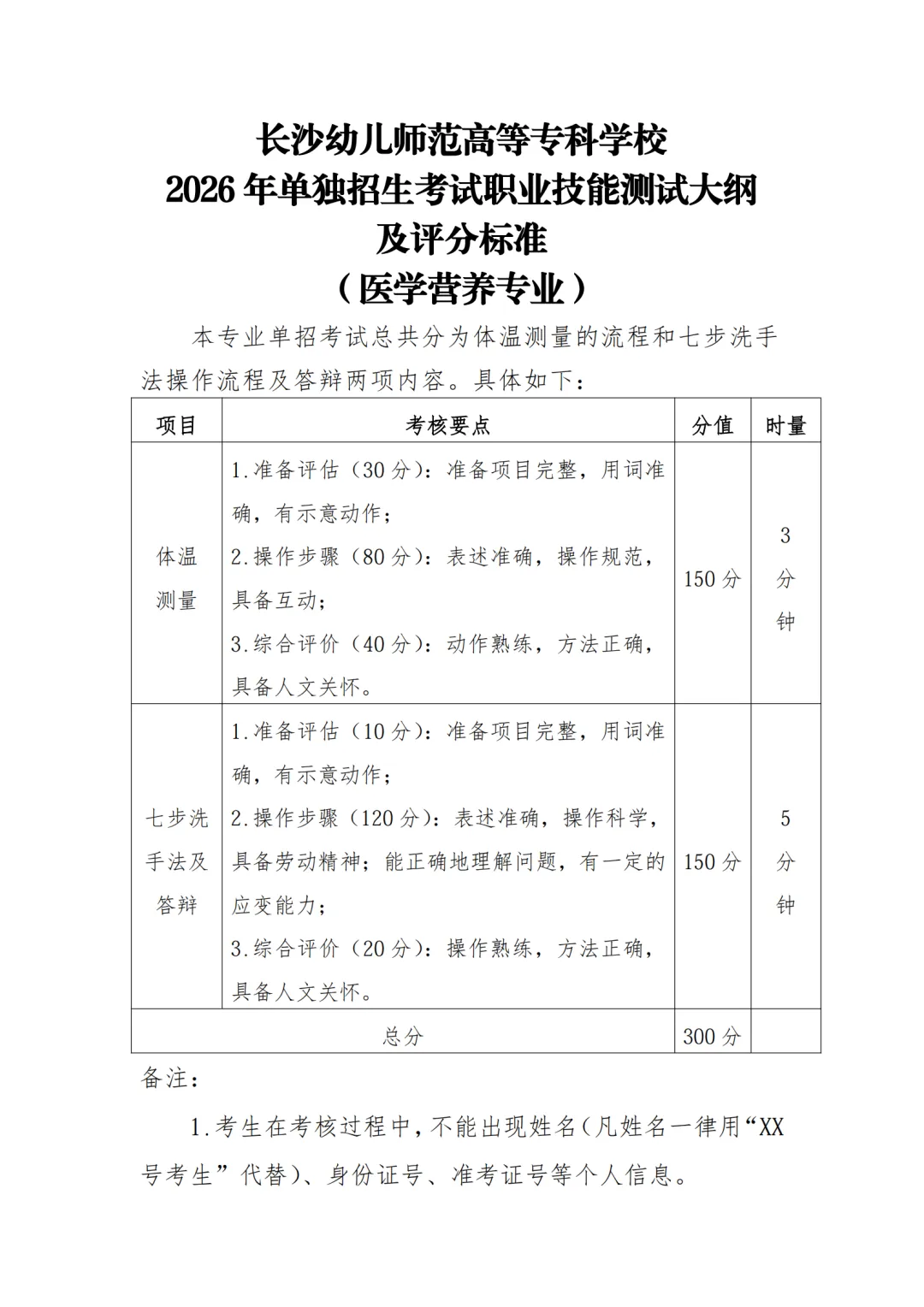 长沙幼儿师范高等专科学校2026单招考试大纲