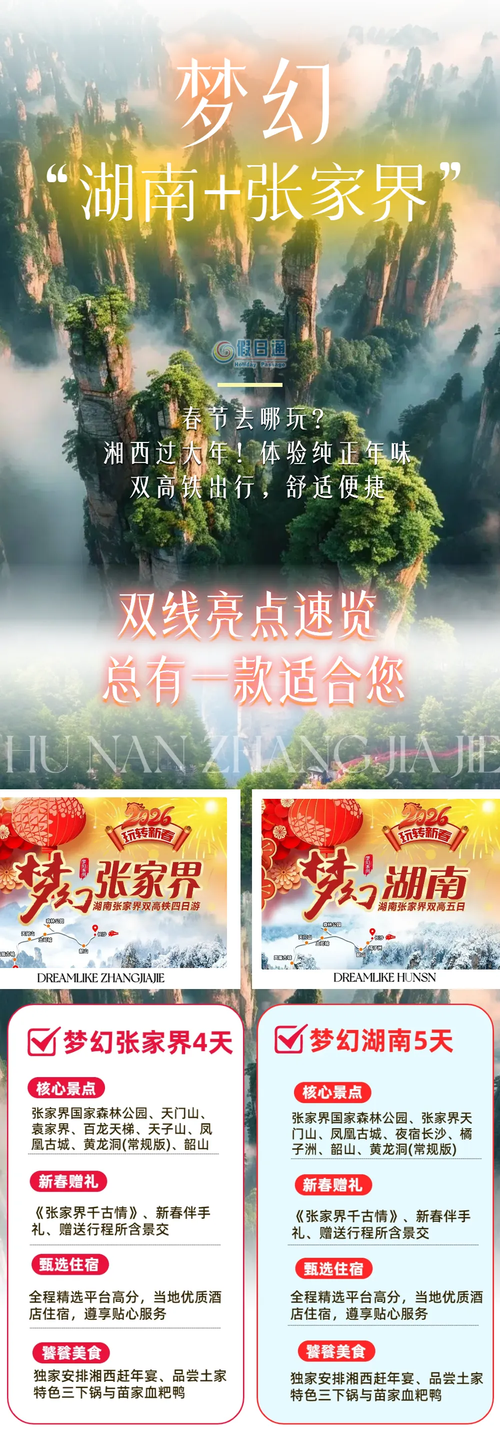 全程优选品质酒店,赠送张家界千古情