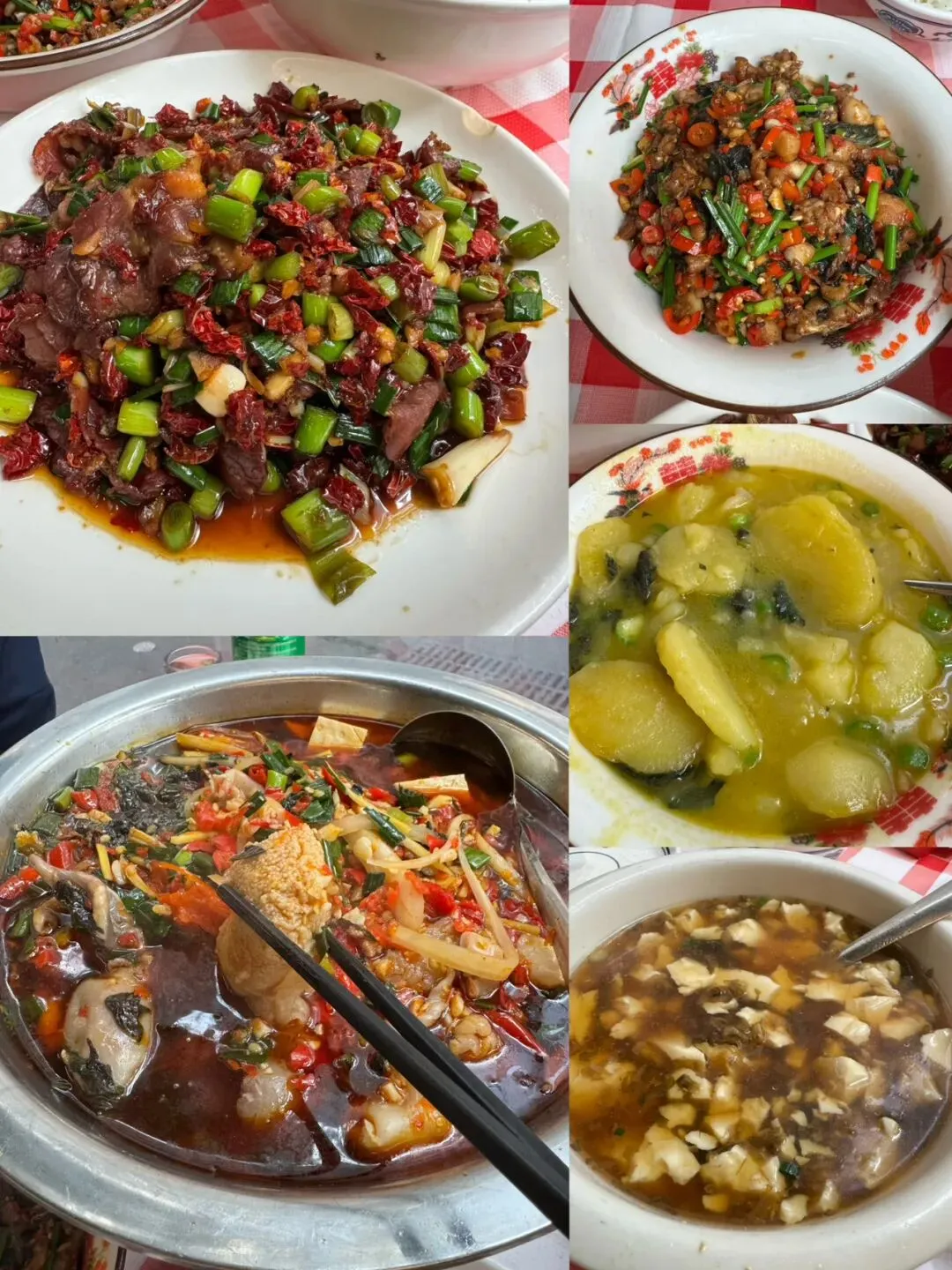 最后一天找了一家社区里的小馆子,桌椅板凳摆在柏油马路上,简易的棚子里满满都是人,两点钟到这边取号排队15桌~听着棚子里大厨们叮叮当当的炒菜声,香味一阵阵扑面而来,看着菜单上的每道菜都想点,对于能吃辣的哥哥来说,这里的每一餐都很尽兴,一边嗦着嘴巴喊辣一边嚷嚷着太好吃啦,用美食与城市建立最朴实的连接,用味觉记录我们的脚步走过的地方~鱼泡鱼籽锅仔超好吃,记得小时候老人总说吃鱼籽会懵(大概是会笨的意思),本来也就不聪明,那就放心大胆的吃吧,鱼泡Q弹饱含酸萝卜的汤汁,一吃一个不吱声~青蒜炒腊牛肉,第一次吃到腊牛肉,薄薄的一片很有韧劲,裹着青蒜和干辣椒,每一口的滋味都香到了心头~紫苏土豆块,绵密到夹不起来,每一口辣菜的间隙里,就用它来做缓冲了~一顿饭的功夫,耳边充斥着各种声音,大姐们安排座位端菜上菜的叫喊声,隔壁桌好听的长沙方言的唠嗑声,厨房里的锅碗瓢盆抽烟机的轰鸣声~哥哥说耳边一直有着声音,又感觉不到具体是什么声音。我说这大概就是沉浸其中的忘我吧,吃到忘我也是真滋味~