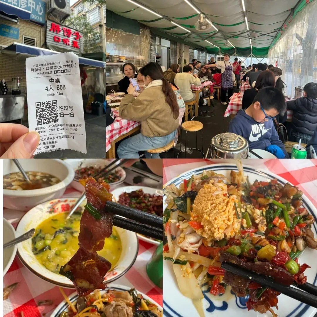 在长沙的每一餐,味觉在好吃与好辣之间反复横跳着,随便一家小店都有地道的辣椒炒肉,豆泡随便炒炒也巨好吃,保温桶的米饭管饱,三个人三个菜76元搞定~