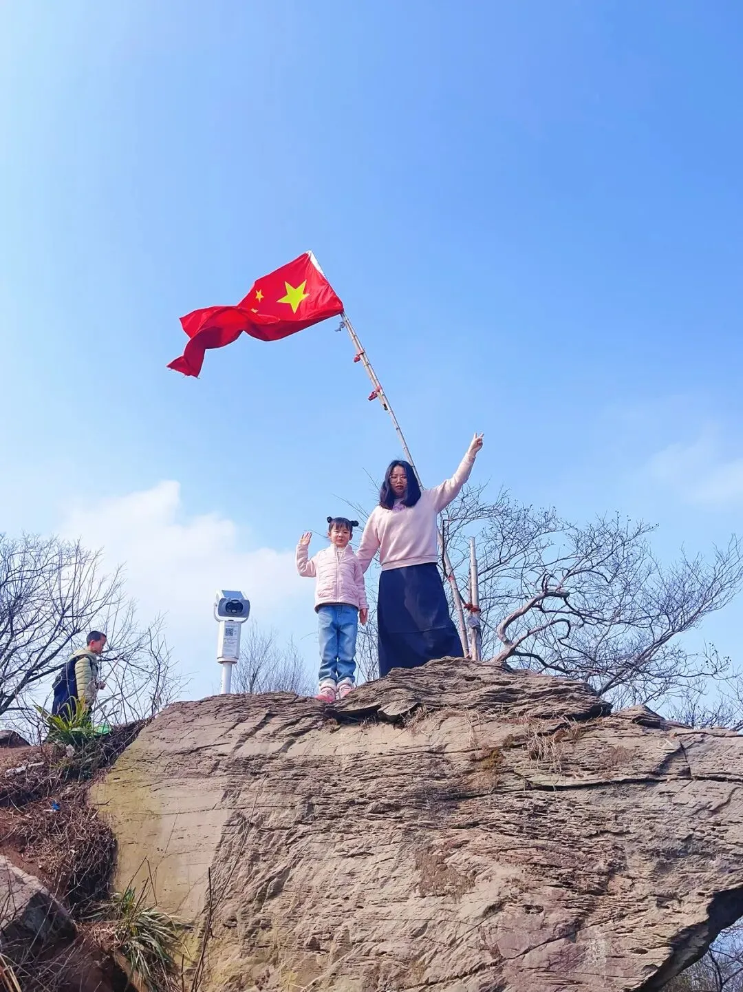 ✅ 冬天徒步记得穿着保暖透气,山顶红旗处风略大,别吹风太久了