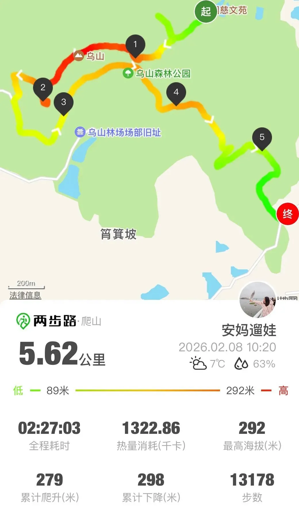 累计爬升:279m,最高海拔292m