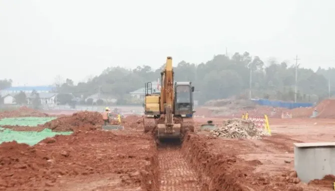 和平西路、朝阳路、宁安路、秋江路、金江大道项目位于江背镇梅花工贸新区,建设内容涵盖道路主体、给排水、照明、绿化、交通设施及智能交通系统等配套工程,由临空集团投资建设、湖南乔口建设有限公司负责施工,于2025年5月正式开工。