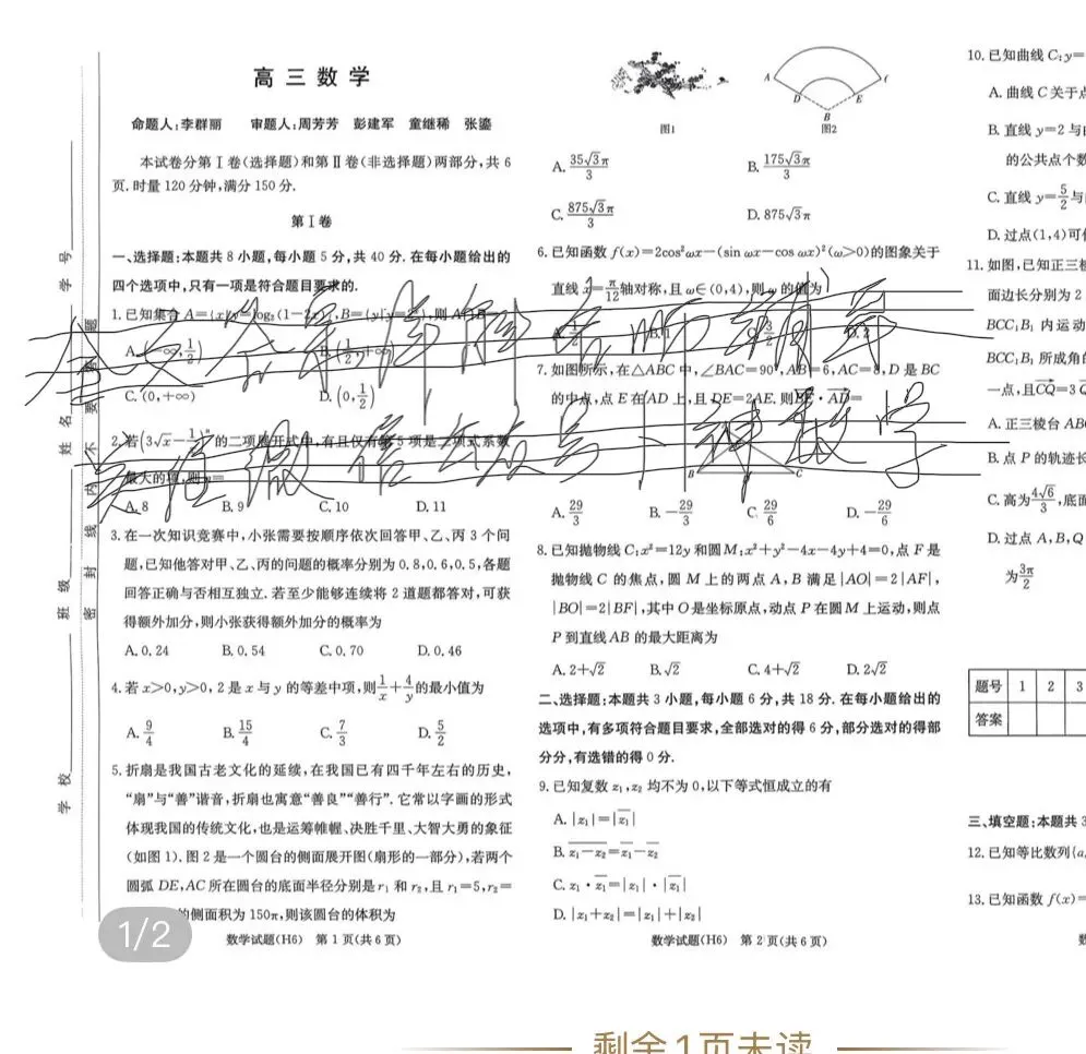湖南长沙市雅礼中学2026届上学期高三数学第6次月考试卷