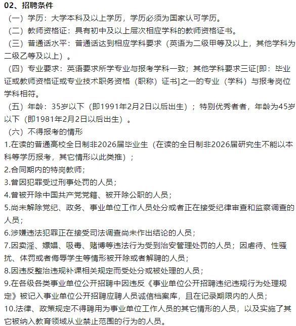 (七)其他:有班主任经验及毕业班教学经验者优先。